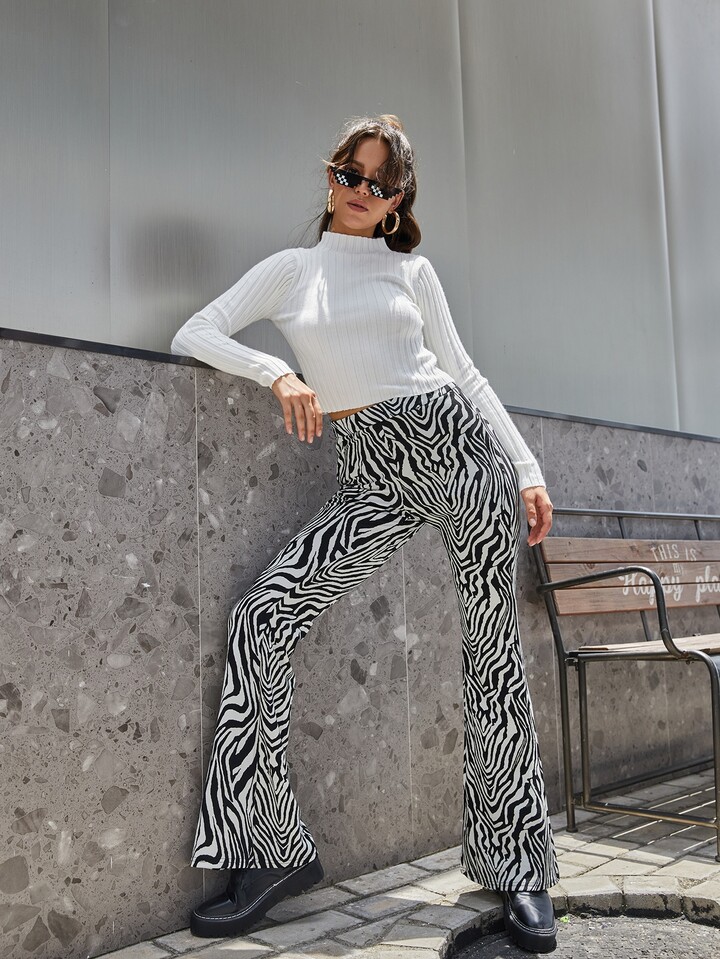 سروال واسع من الاسفل ومخطط بجلد الحمار الوحشي