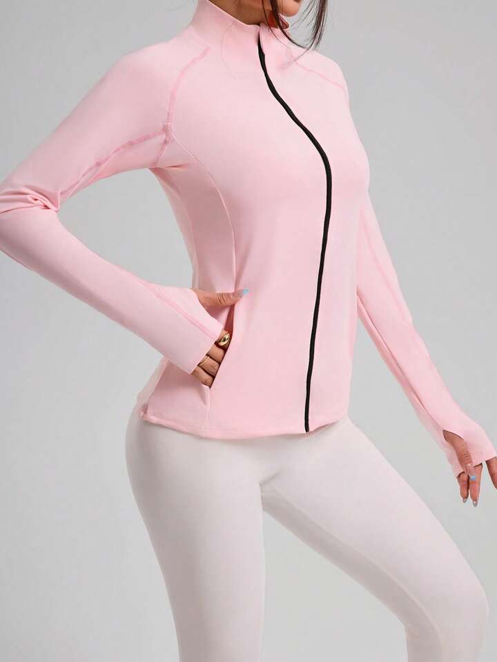 جاكيت رياضي دافئ بجيب مائل وبسحاب بفتحة ابهام
