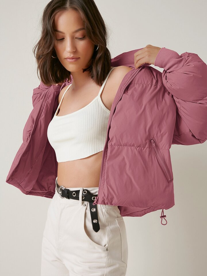 معطف شتوي دافئ مبطن مرفوع السحاب للنساء