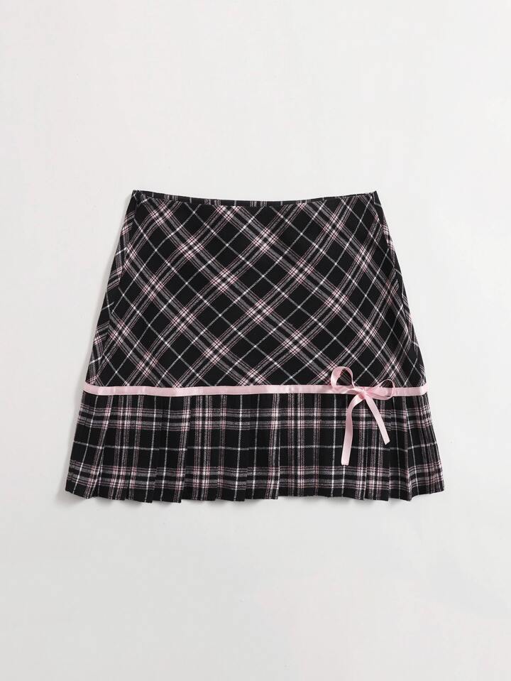 تنورة صوف مقلم بتفاصيل شريط متباين وبسستة جانبي