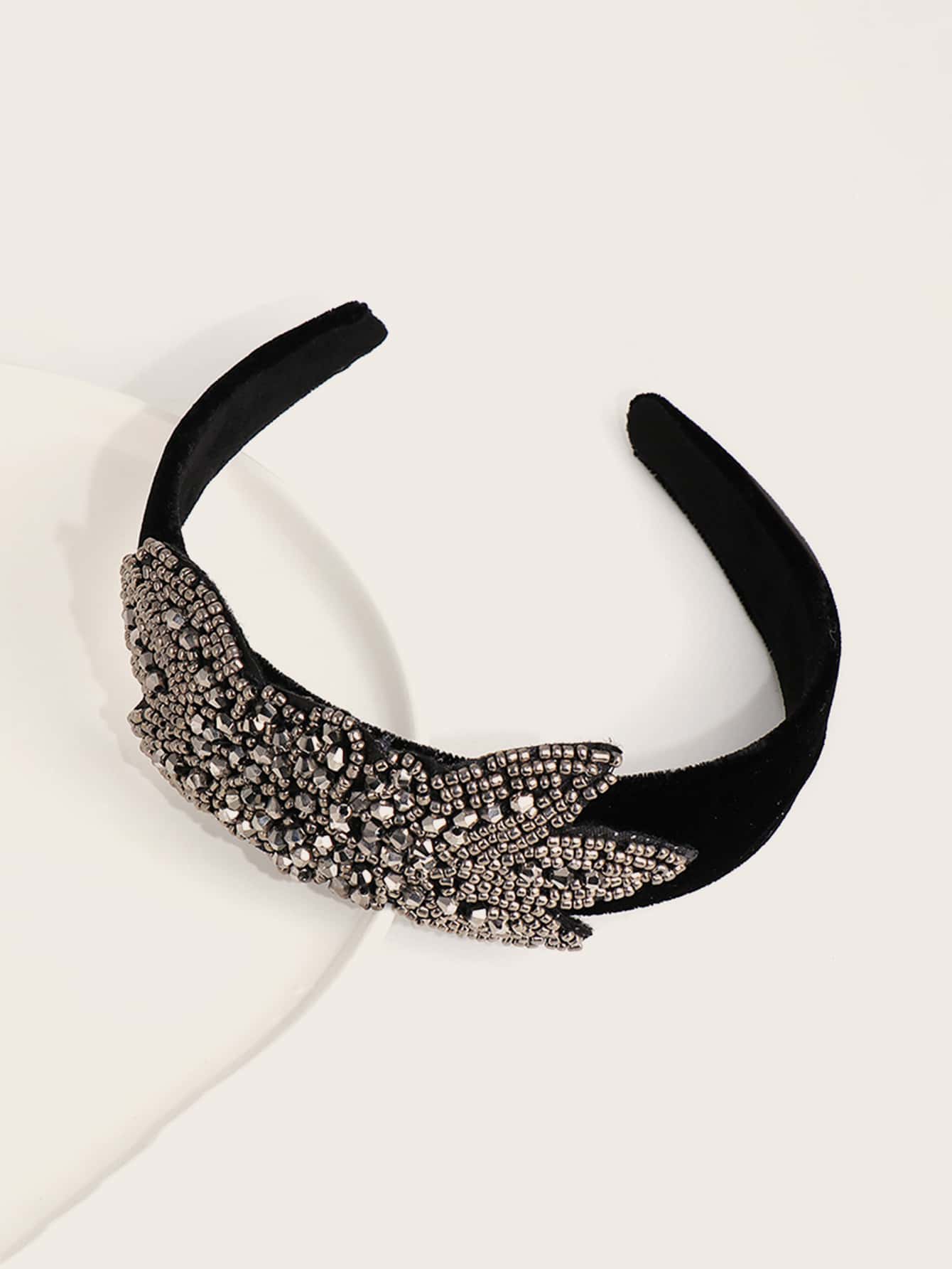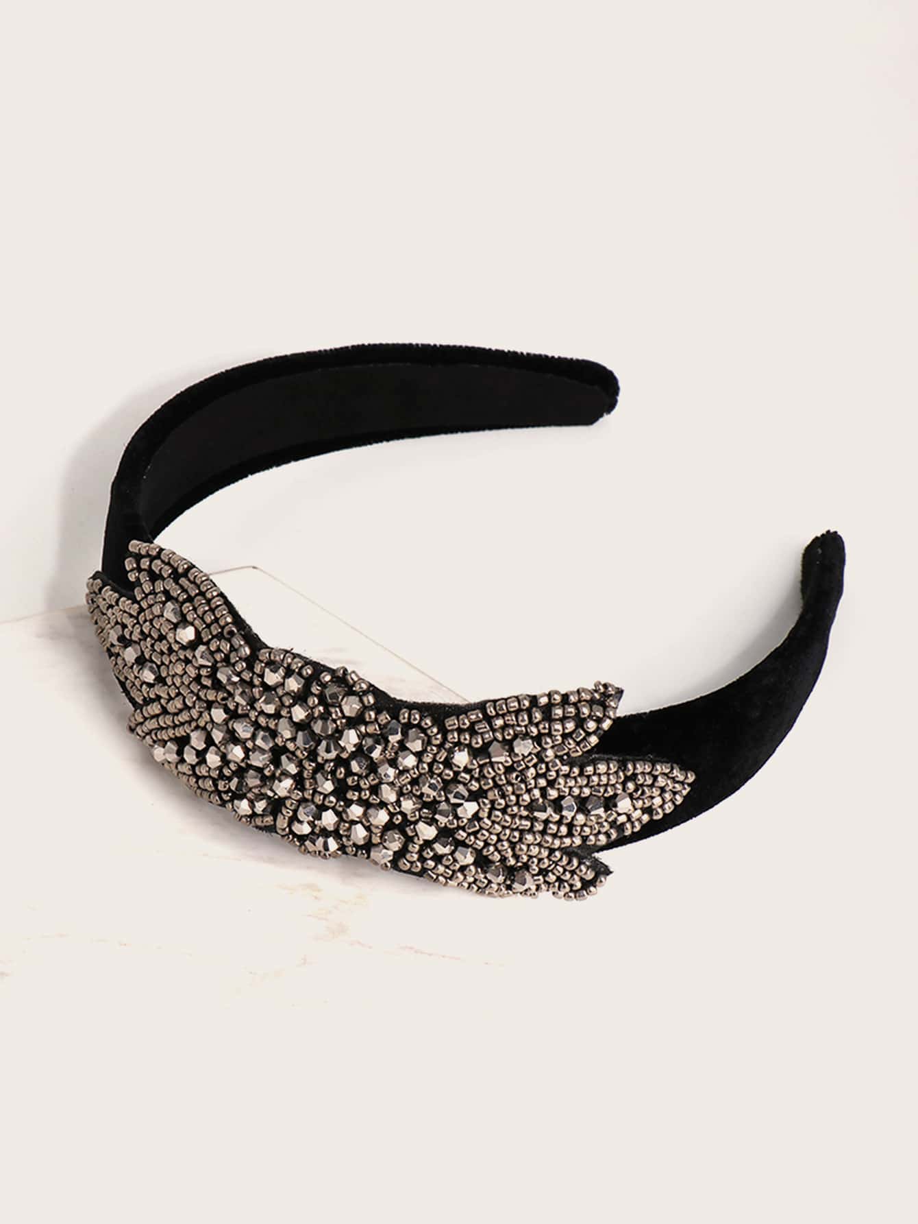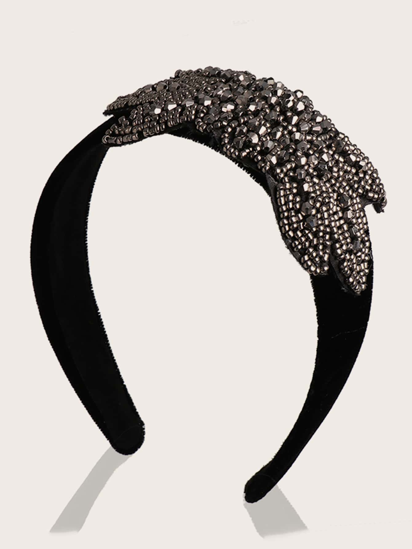 juran 1 قطعة شريط رأس بطراز قصر عتيق مزين بخرز اصطناعي، شريط شعر، إكسسوارات شعر باللون الأسود