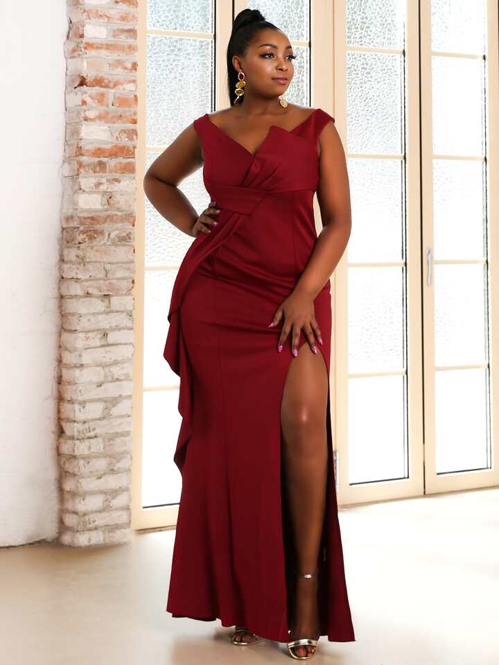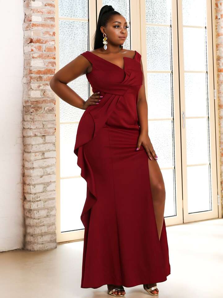 seomiscky فساتين مقاسات كبيرة سستة شق عالية إلى الفخذ مكشكش مبالغ الصاف براقة