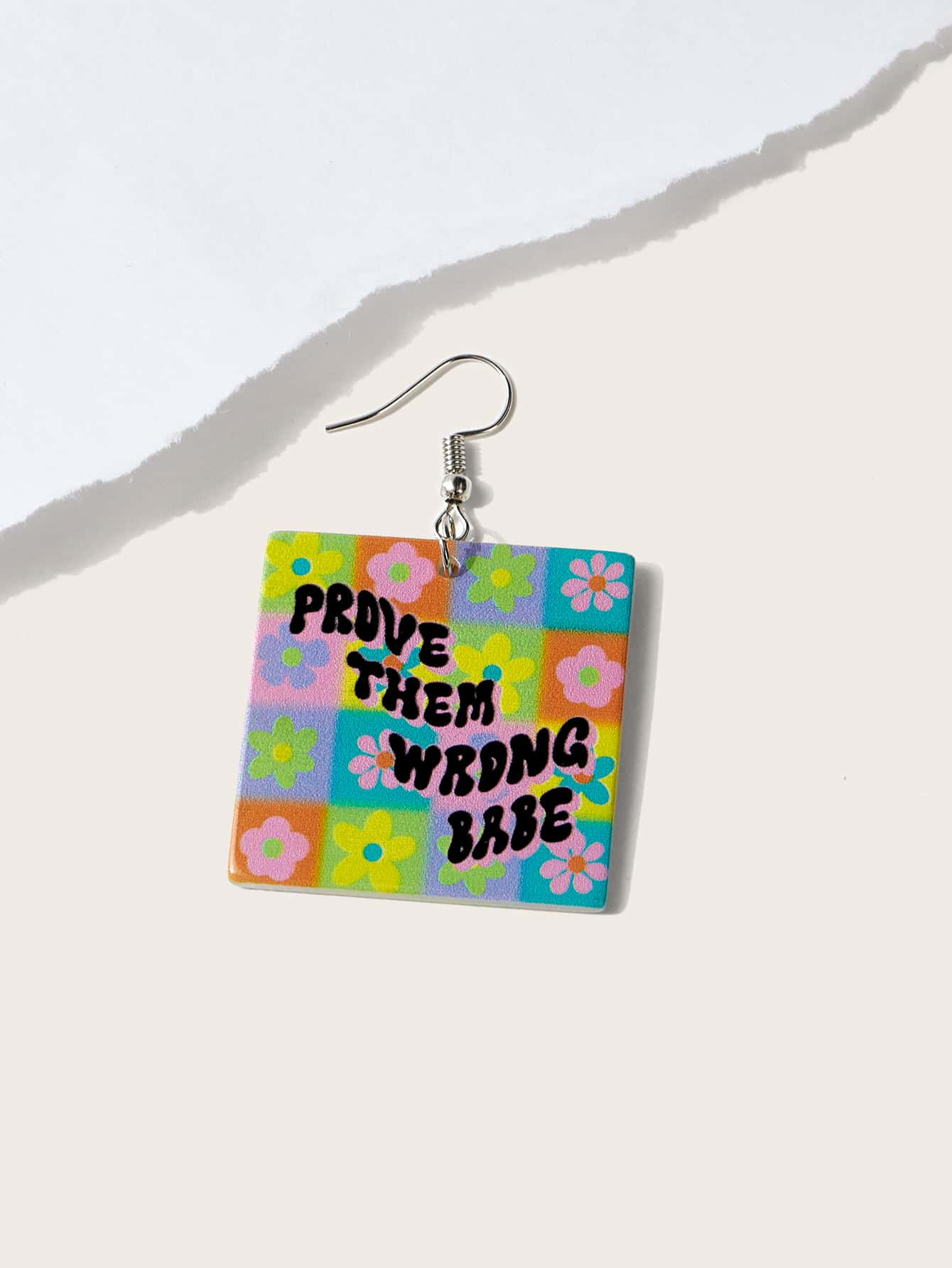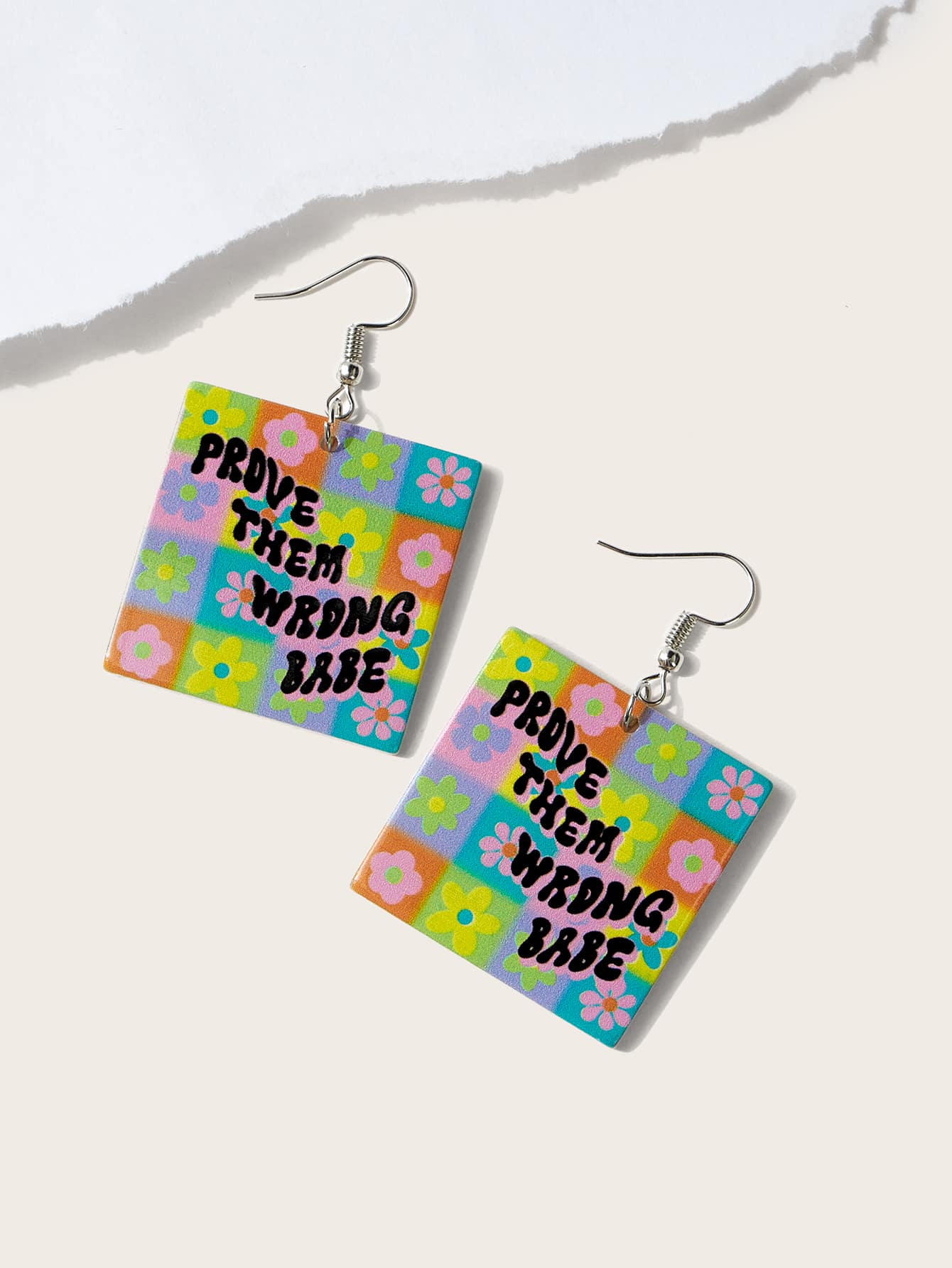 themindfulbutterflyy أقراط متدلية بجرافيك زهر وعبارة مربع