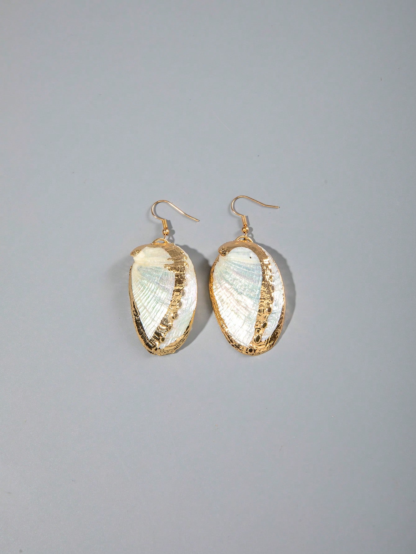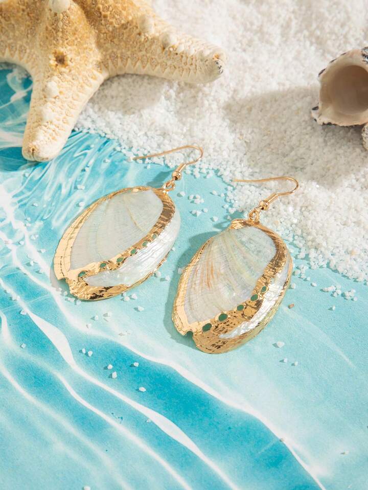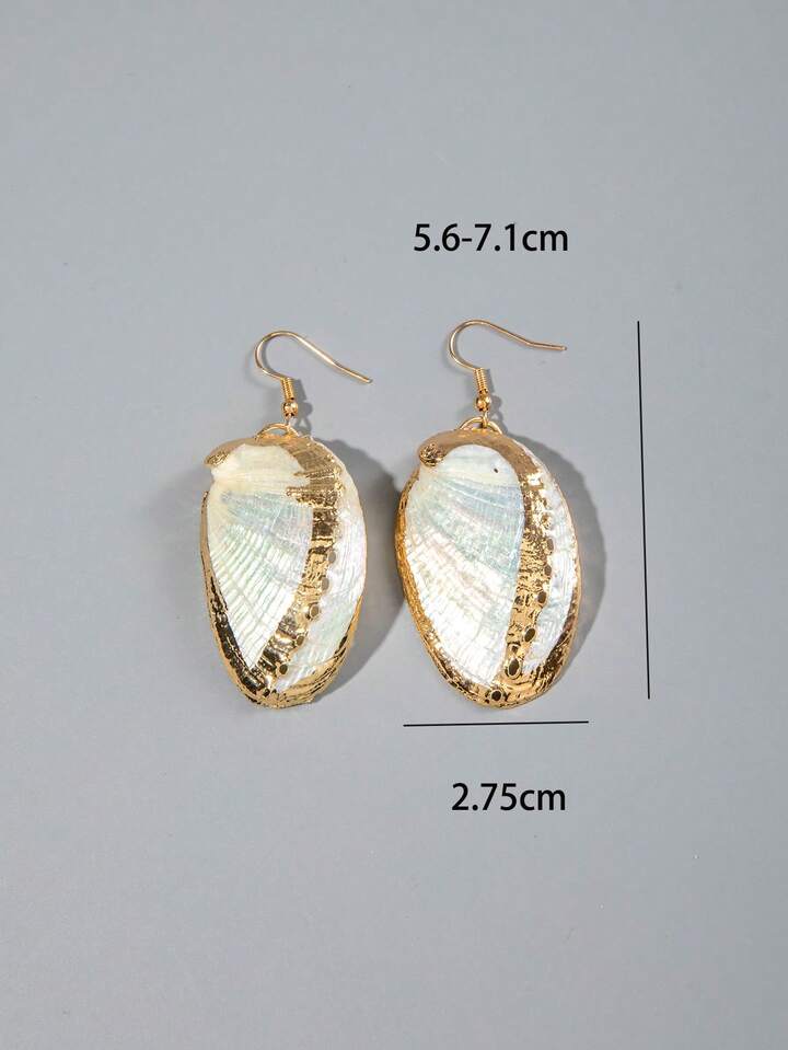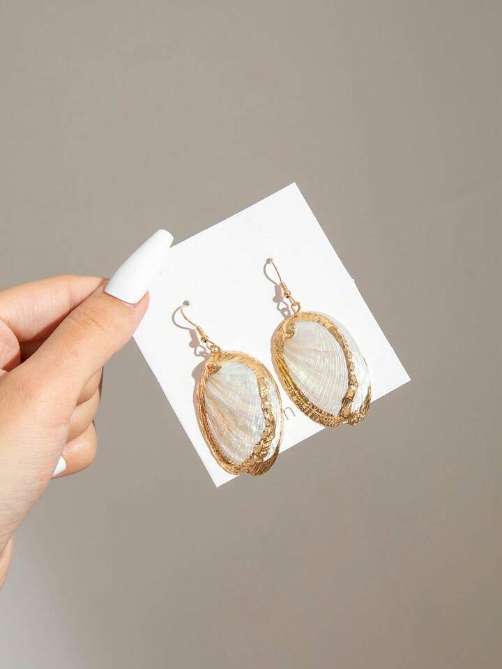 1 Pair Bohemian Style Gold Rim Single Hole Scallop Shell Pendant Earrings, Suitable For Beach Resort Travel, Gift For Friends