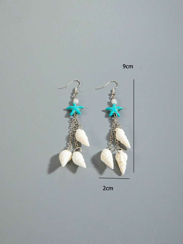 1 Pair Boho Blue Starfish & Shell Pendant Earrings For Women, Suitable For Beach Vacation