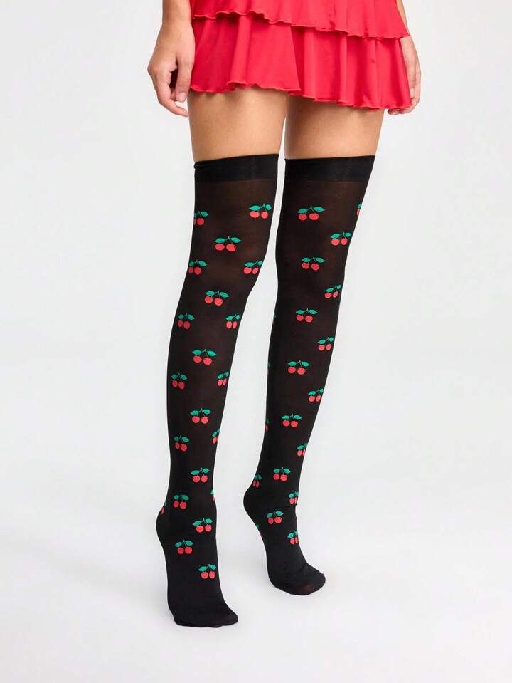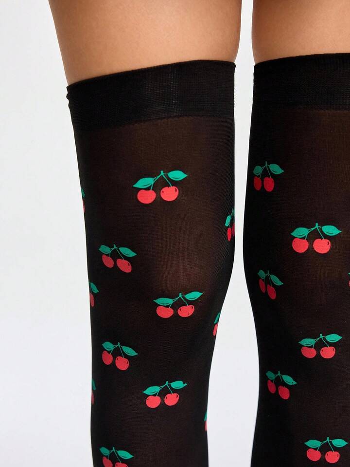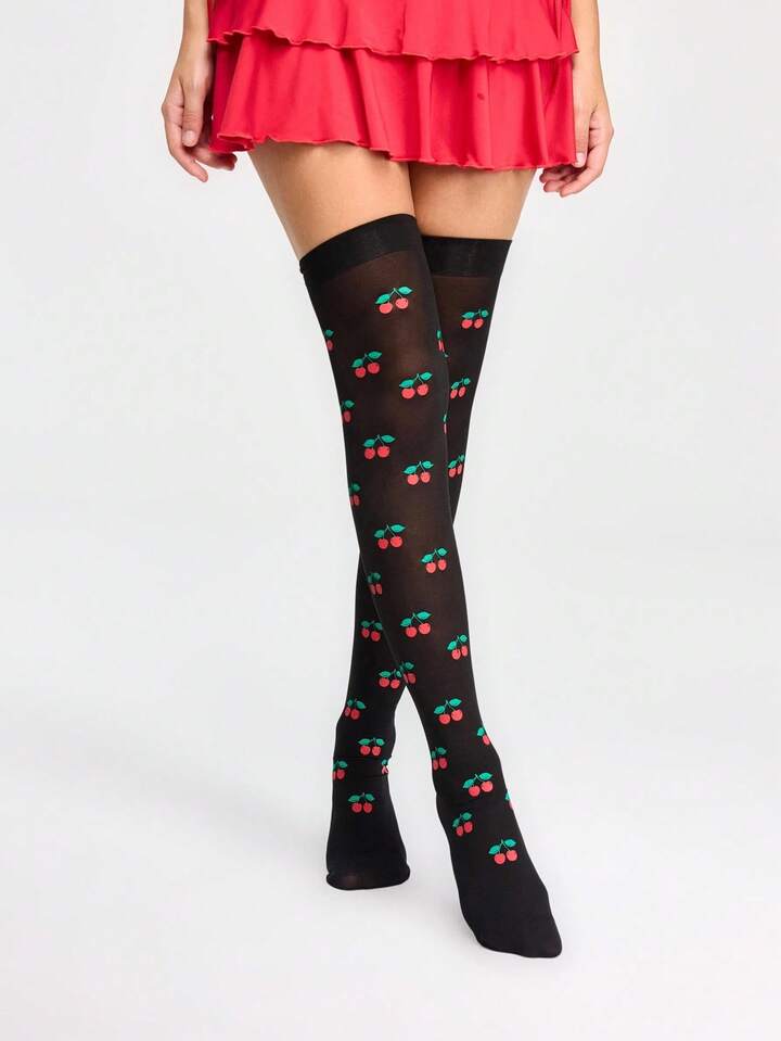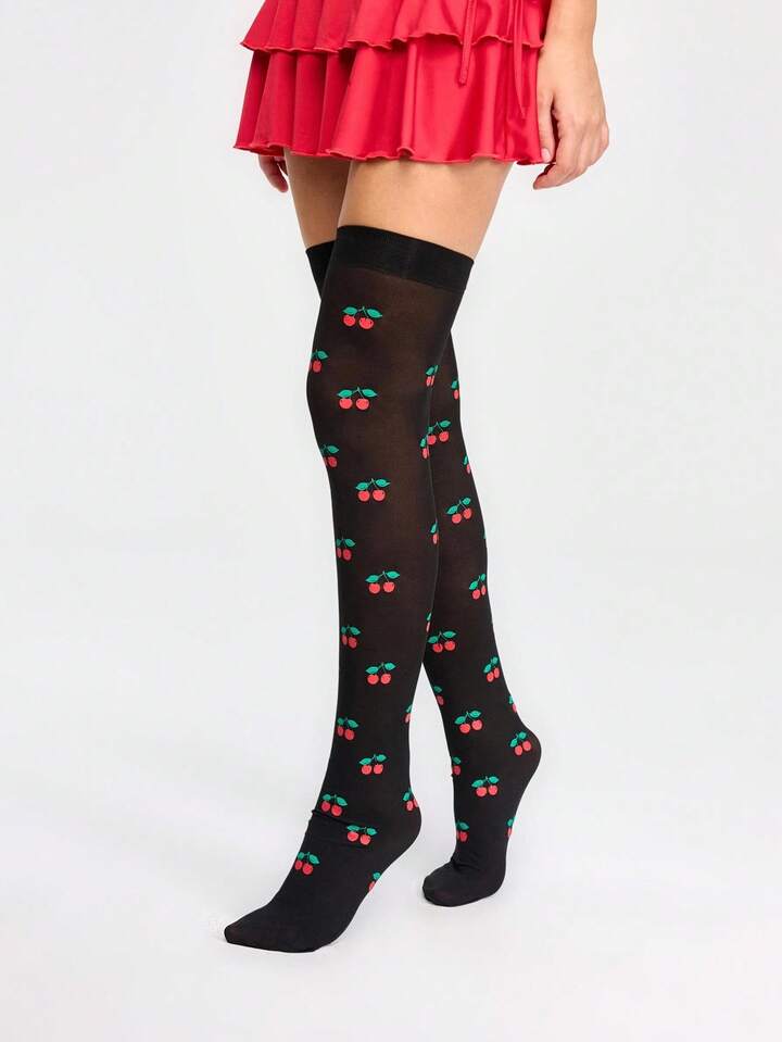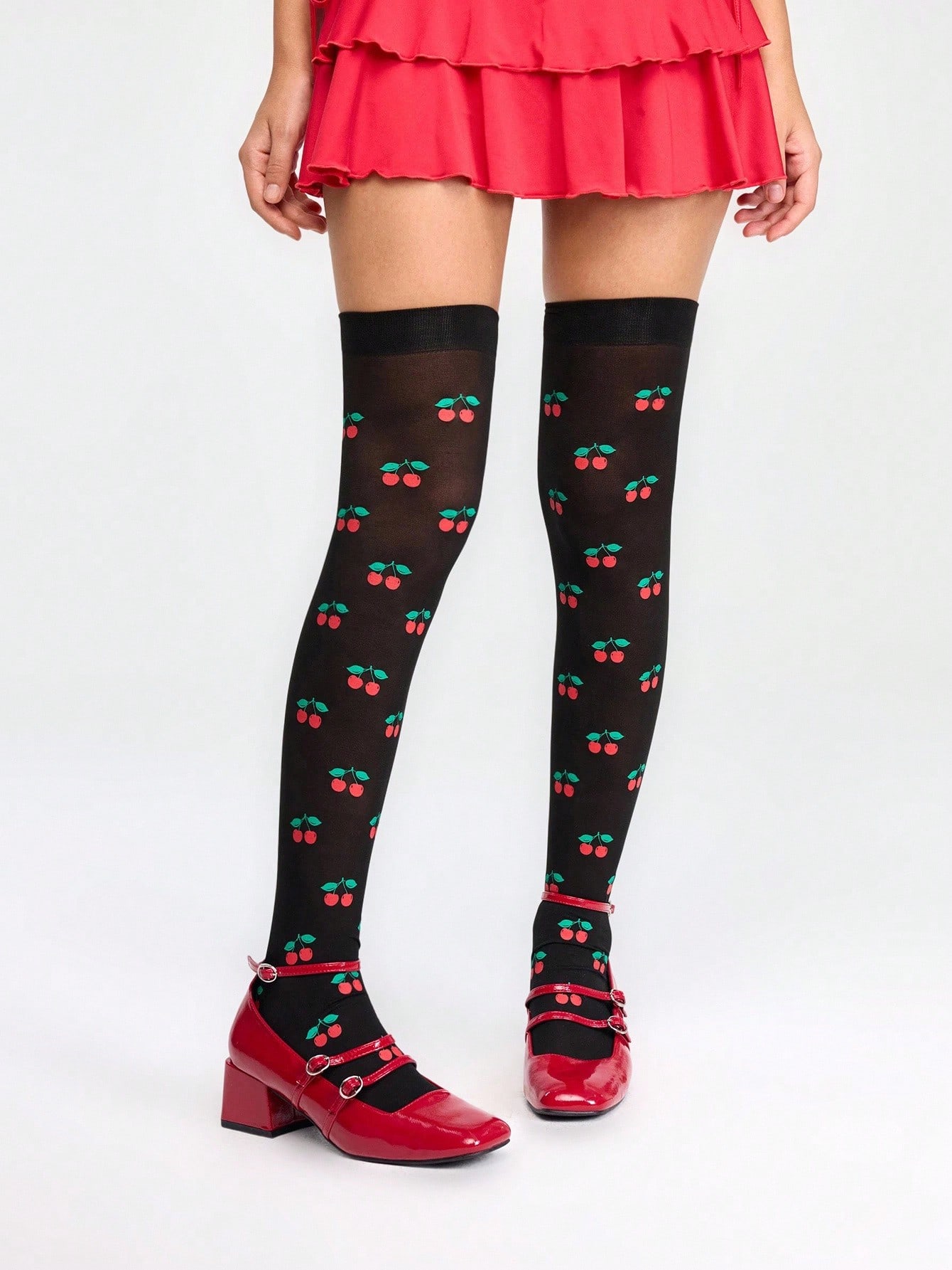 1 Pair Cute Kawaii Cherry Print Double-Sided Thigh-High Socks
