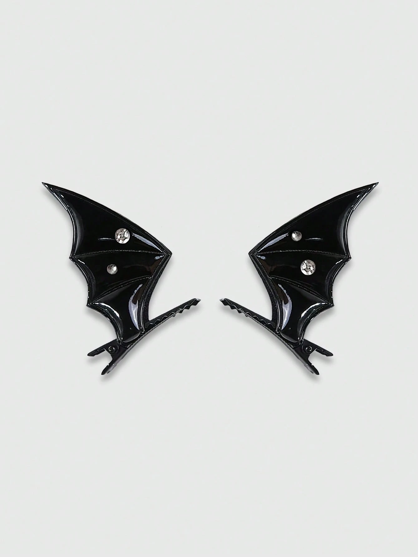 1 Pair Dark Gothic Bat Wing Crystal Decor Hair Clips For Women