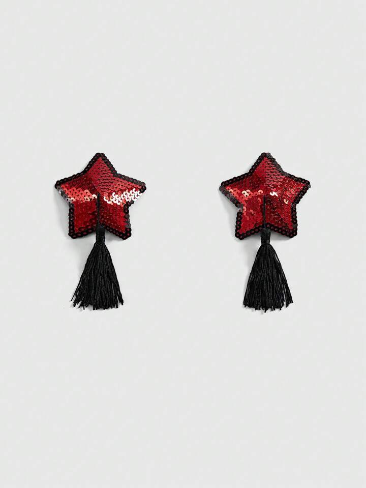 1 Pair Glitter Pentagram Tassel Sexy Nipple Pasties, Grunge Punk Style