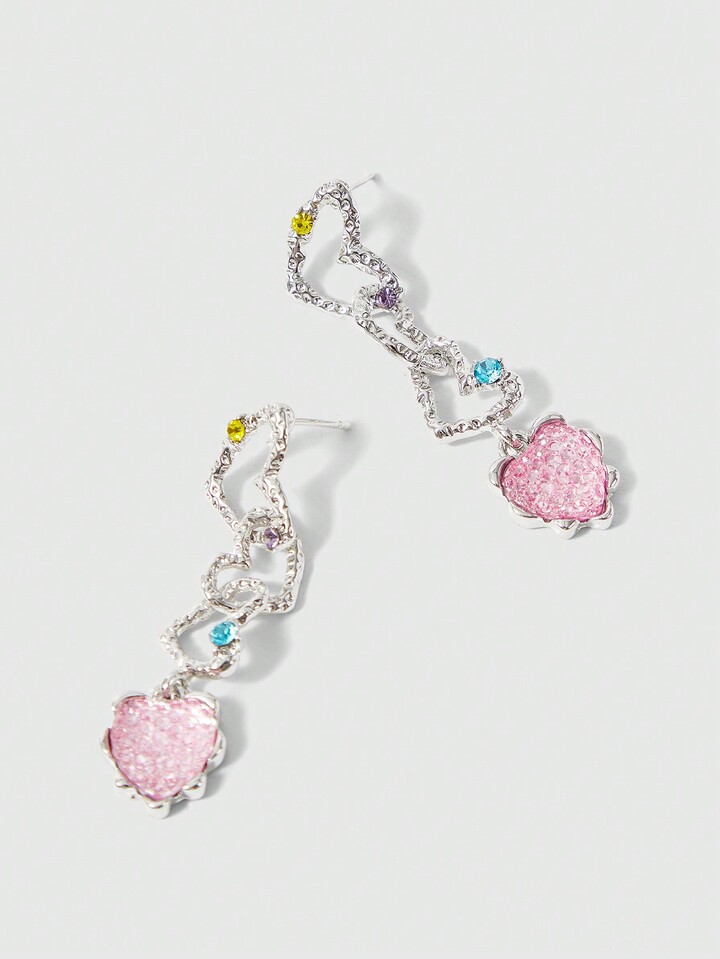 1 Pair Kawaii Designed Versatile Fashionable Pink Heart Tassel Earrings