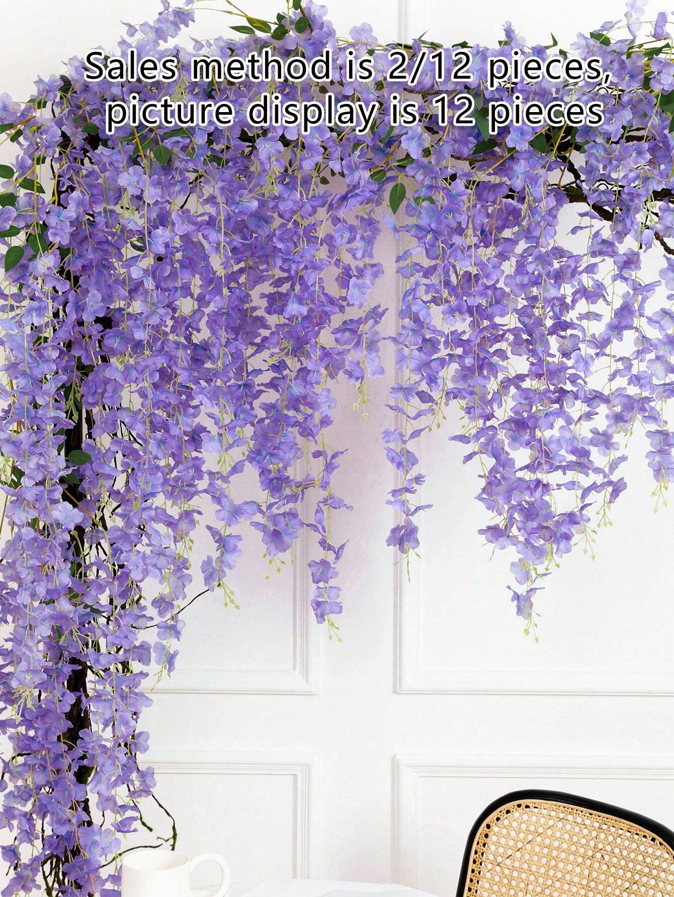 1 Set 2pcs/12pcs Artificial Wisteria Flower Garlands, Lush Silk Flower Vines For Wedding Arch, Backdrop, Party, Home Decoration Indoor & Outdoor