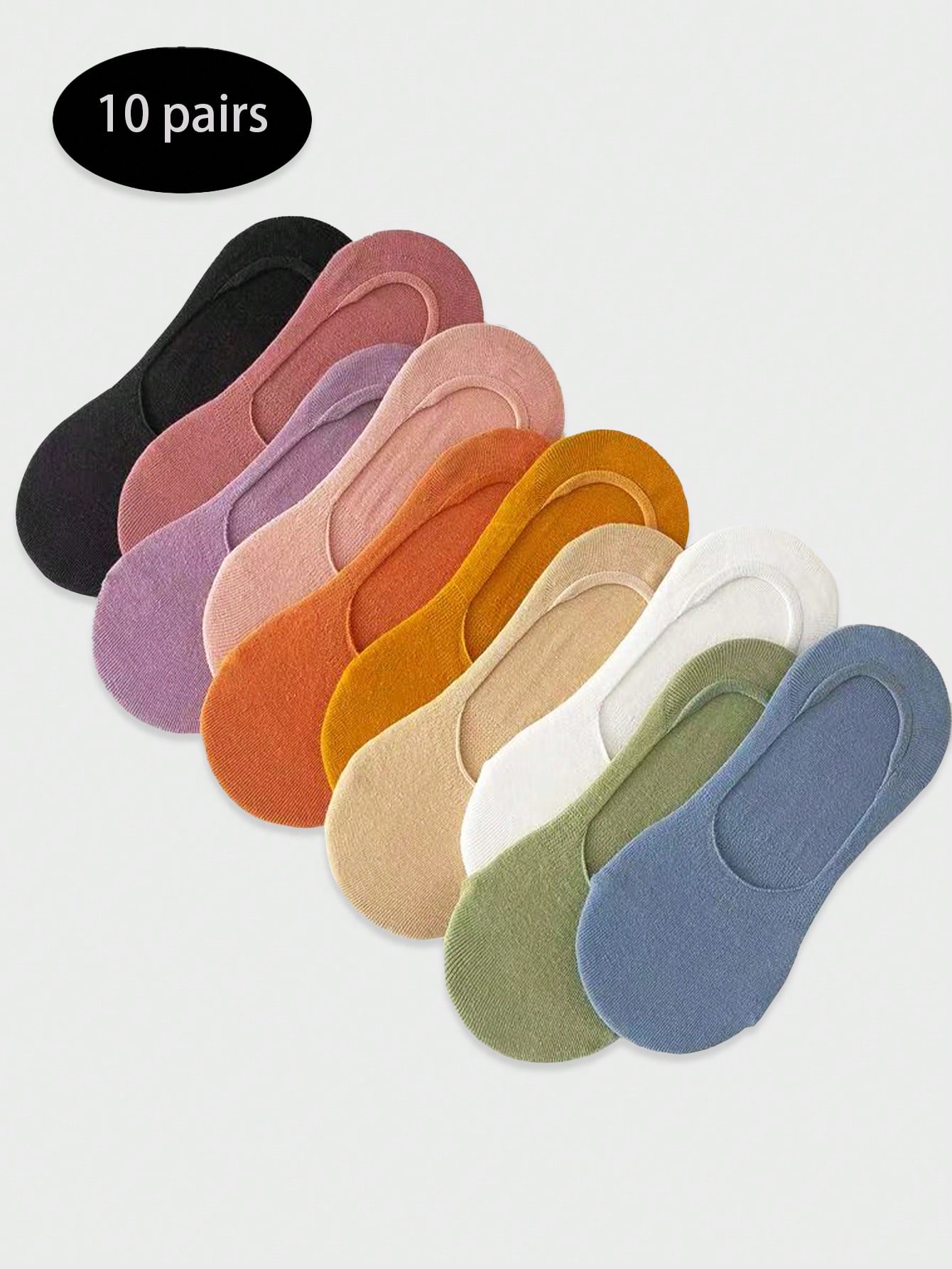 10 Pairs Women's Solid Color Invisible Socks, Casual Boat Socks, Fashion & Versatile, Spring/Summer