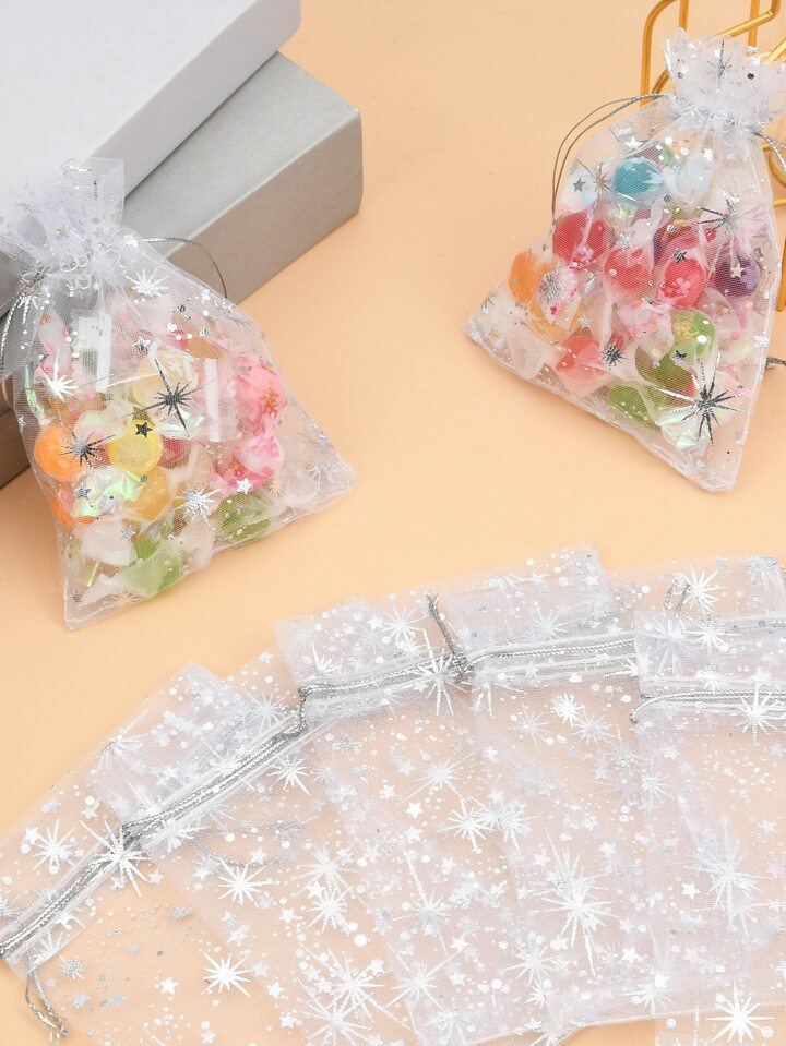 10pcs Light Pink Star Pattern Mesh Drawstring Gift Packaging Bag, Storage Pouch, Christmas, Ramadan, Ramadan Decor, Eid Mubarak