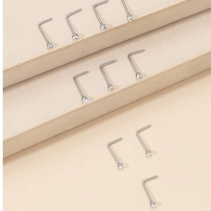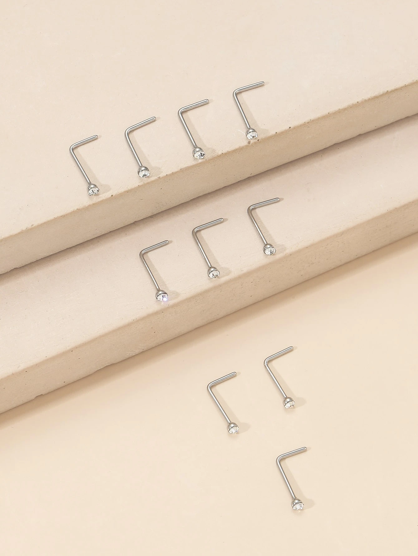 10pcs/set Stainless Steel, Simple & Stylish Rhinestone Decor Nose Stud For Women And Men, Punk Piercing, A Fashionable Body Jewelry Gift For Any Occasion