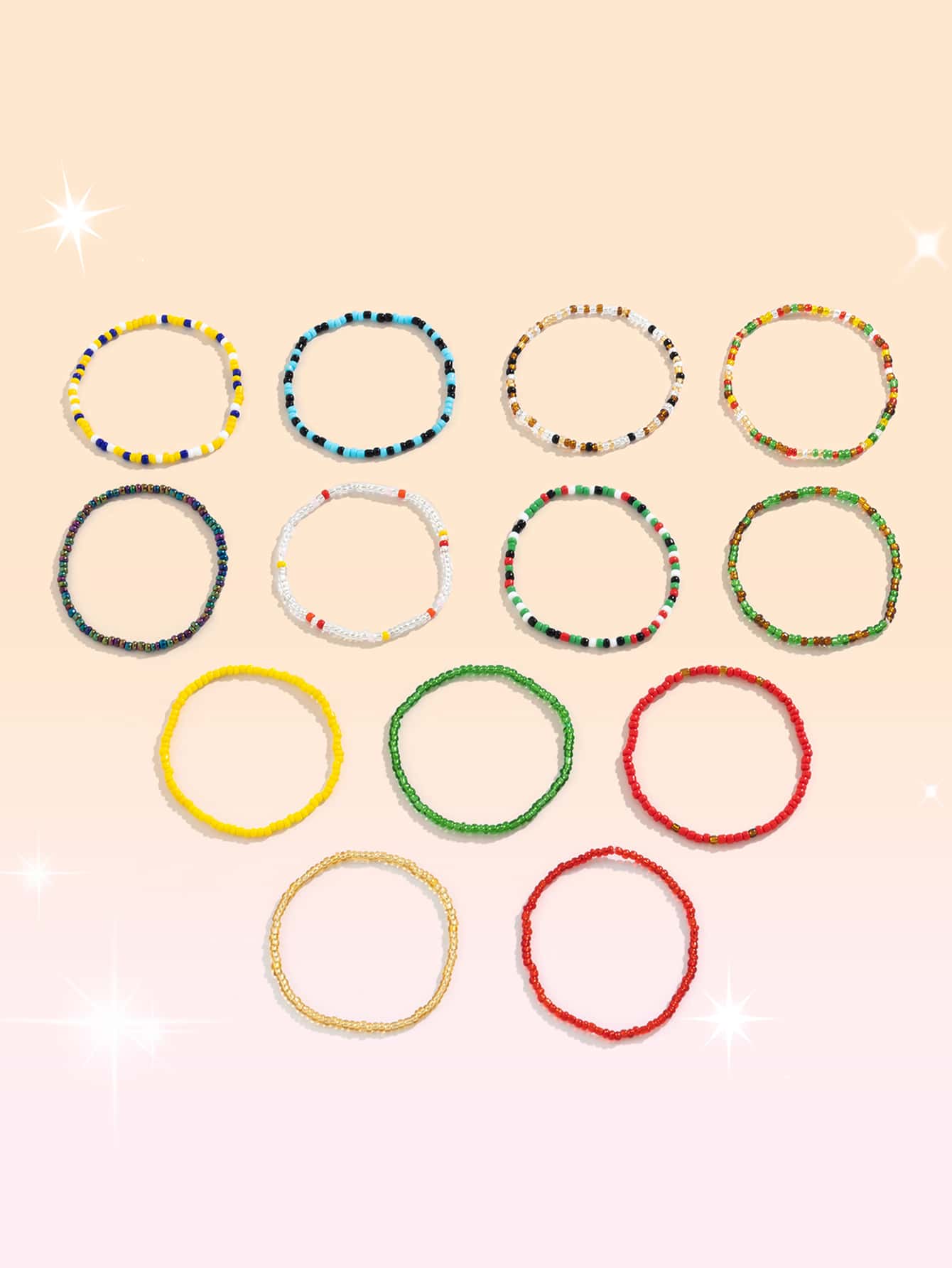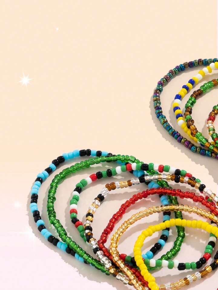 13pcs/set Fashionable Color Block Beaded Bracelet For Women For Daily Decoration
