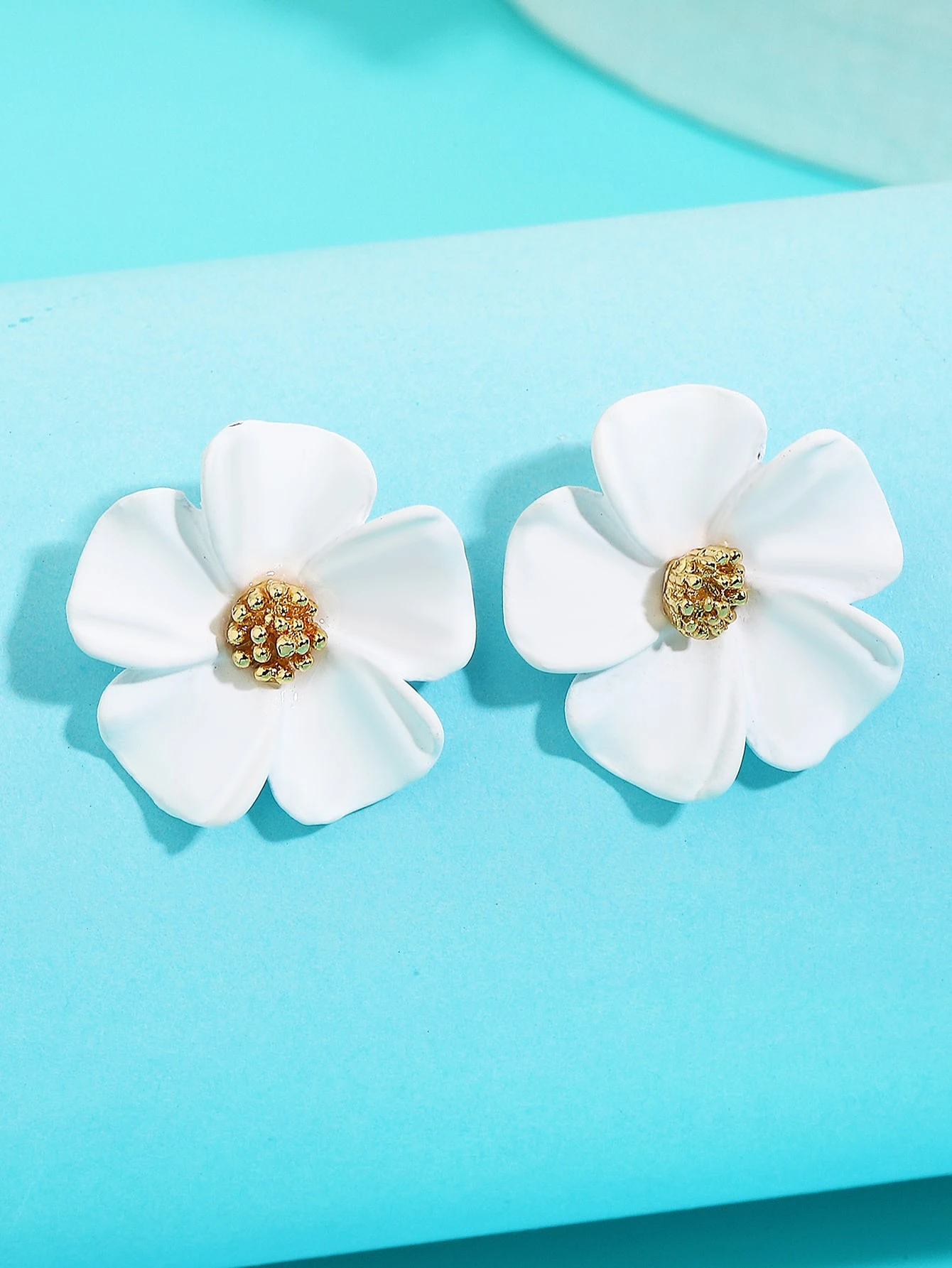 1pair Cute PMMA White Flower Stud Earring For Women For Daily Decoration, Vacation, Beach Party