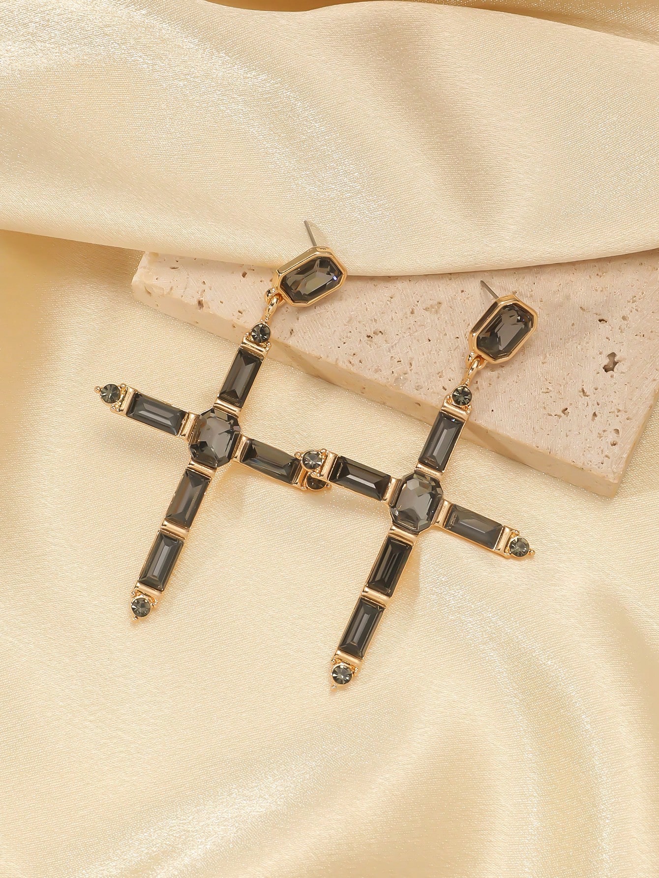 1pair Fashionable Creative Geometric Rhinestone Cross Shape Dangle Earrings For Women