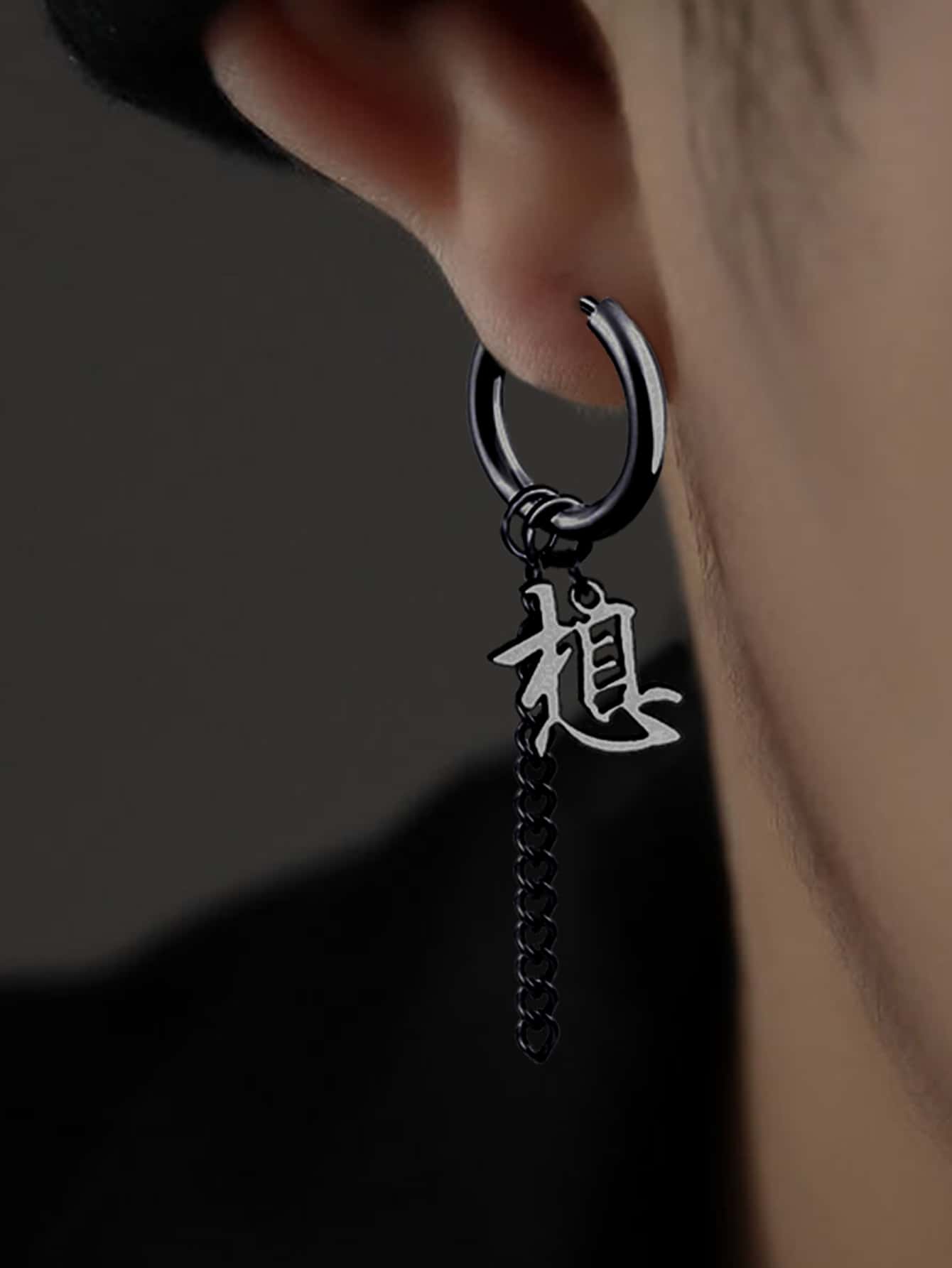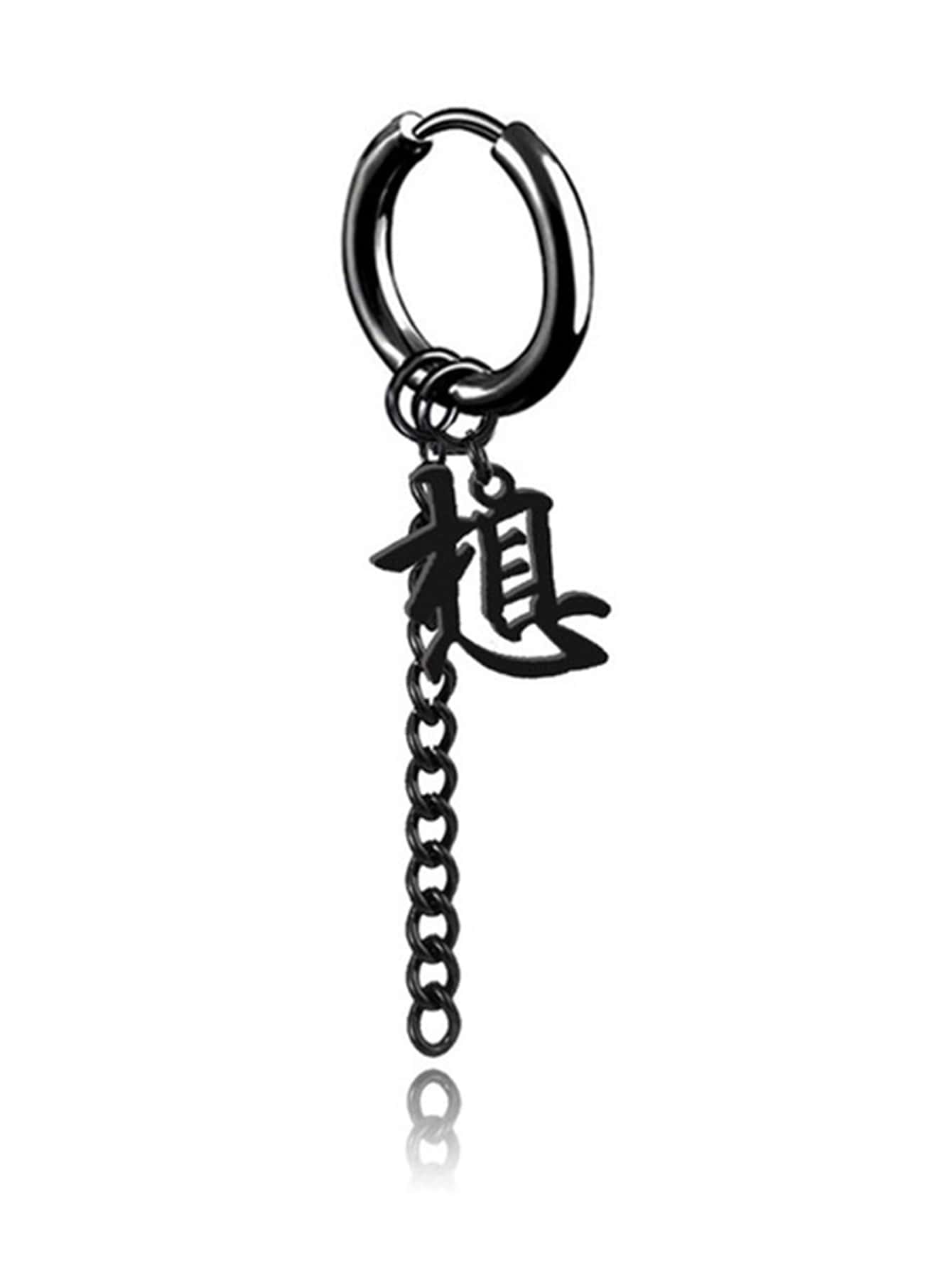 1pair Funky Stainless Steel Chinese Character Dangle Earring For Men Women For Daily Decoration