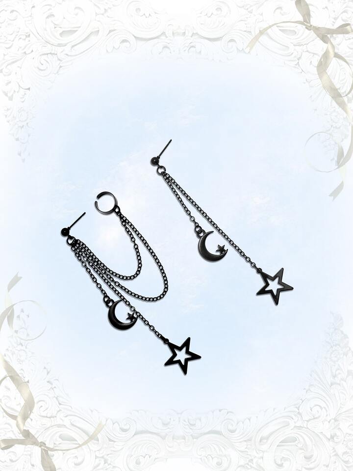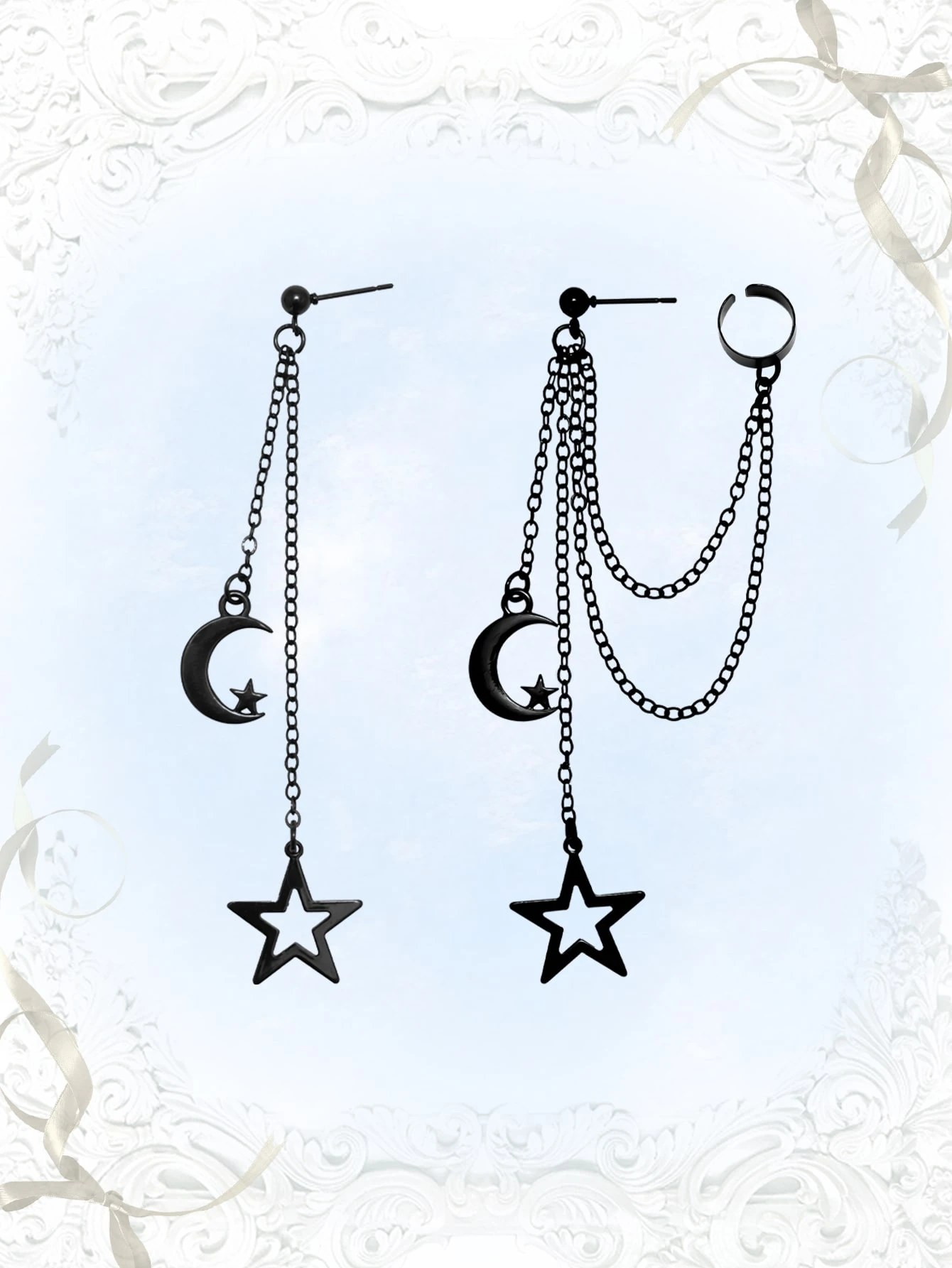 1pair Punk Zinc Alloy Moon & Star Decor Mismatched Drop Earrings For Women For Daily Decoration