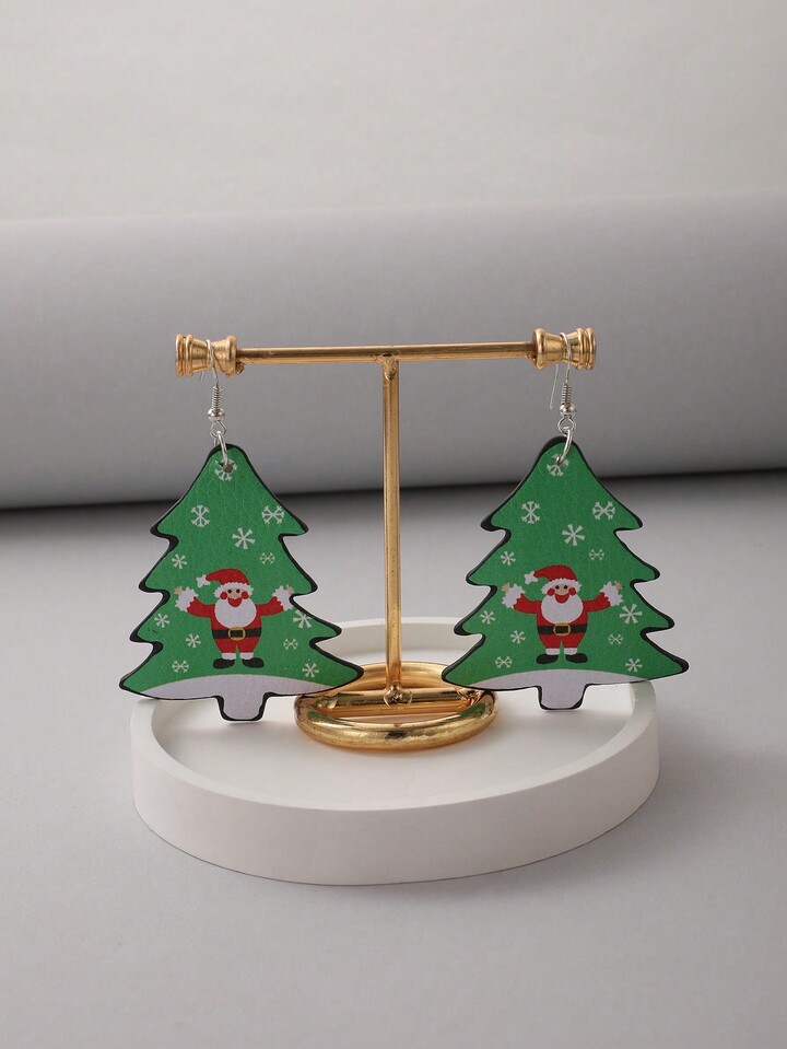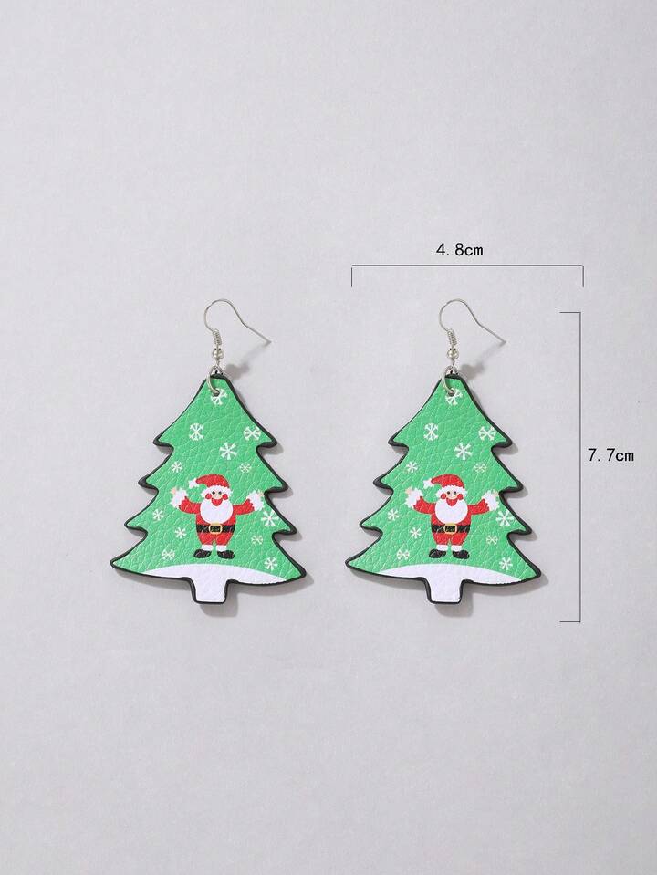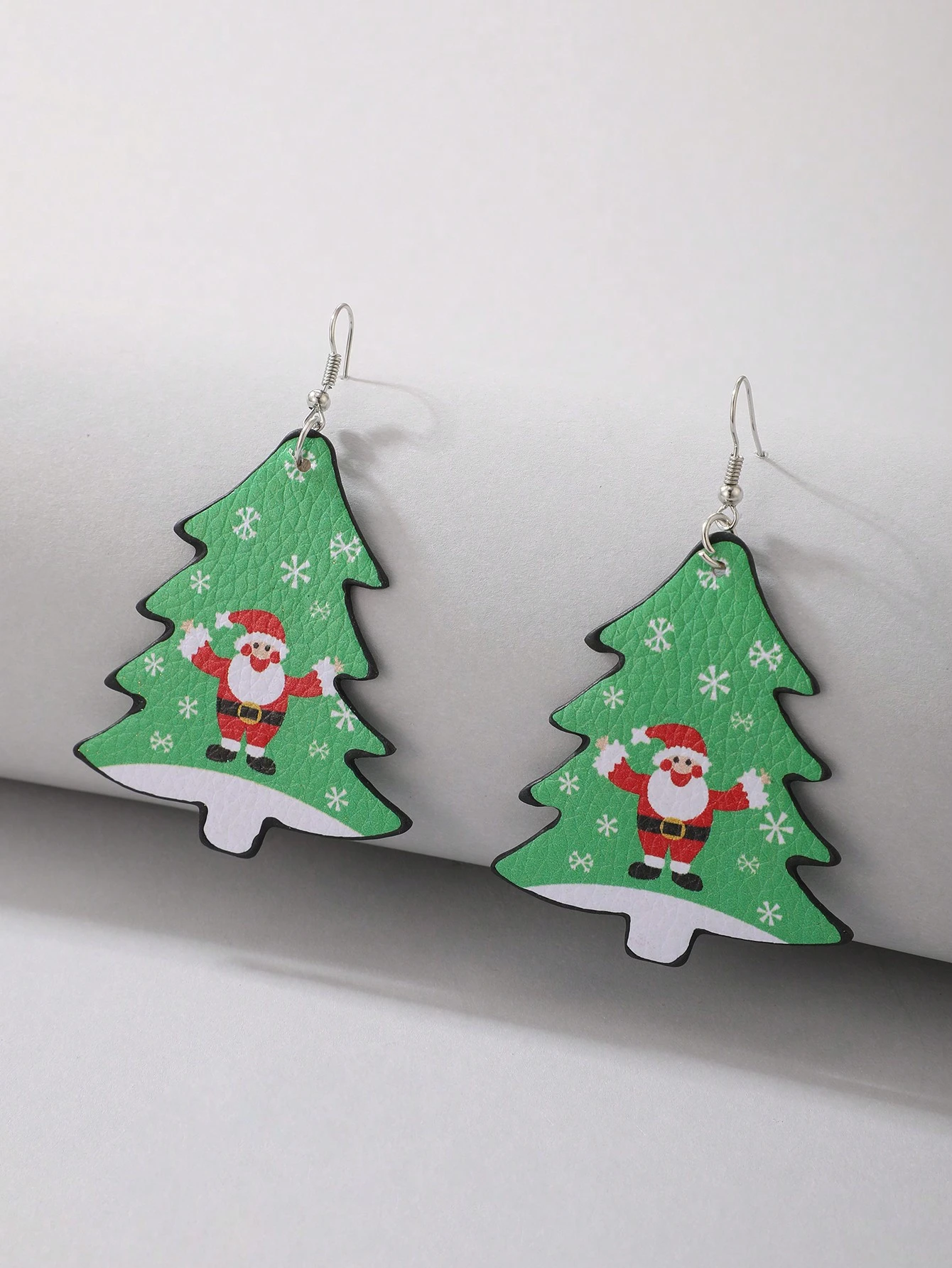 1pair Resin Santa Claus & Faux Leather Christmas Tree Printed Earrings, Women's Christmas Gift