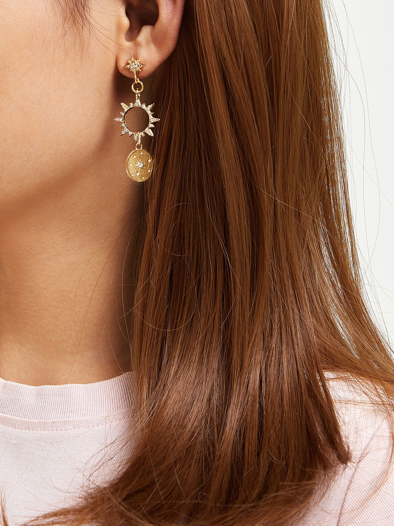 1pair Rhinestone Decor Star & Coin Dangle Earrings