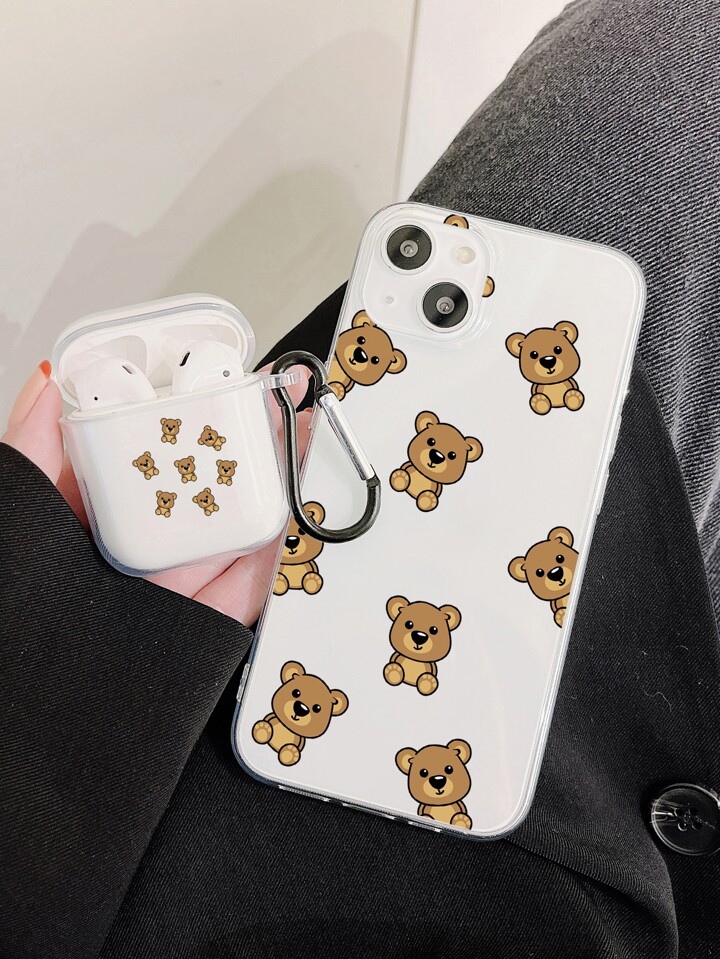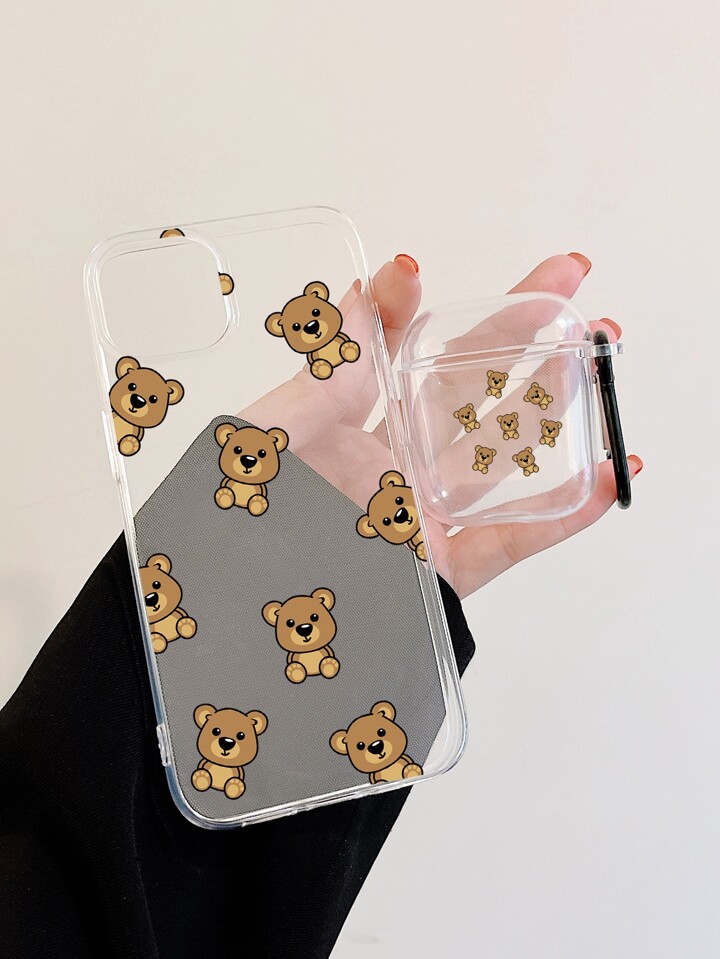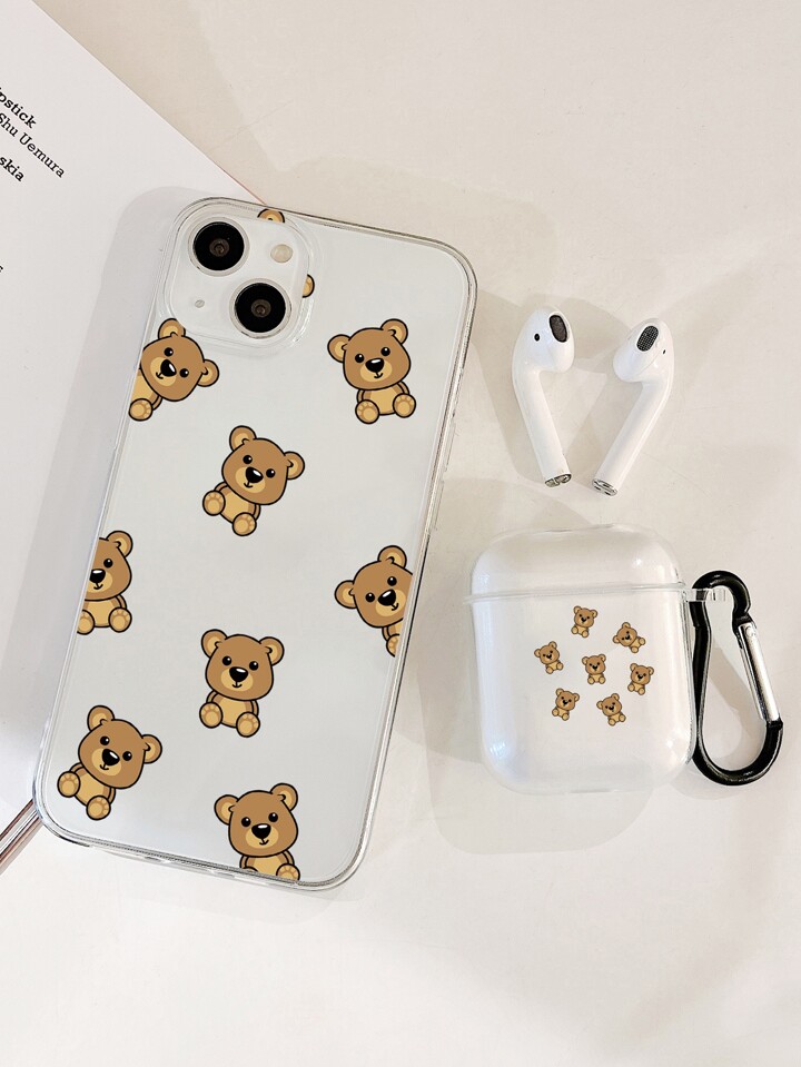 1pc Cartoon Bear Phone Case & 1pc Clear Case Compatible With Airpods