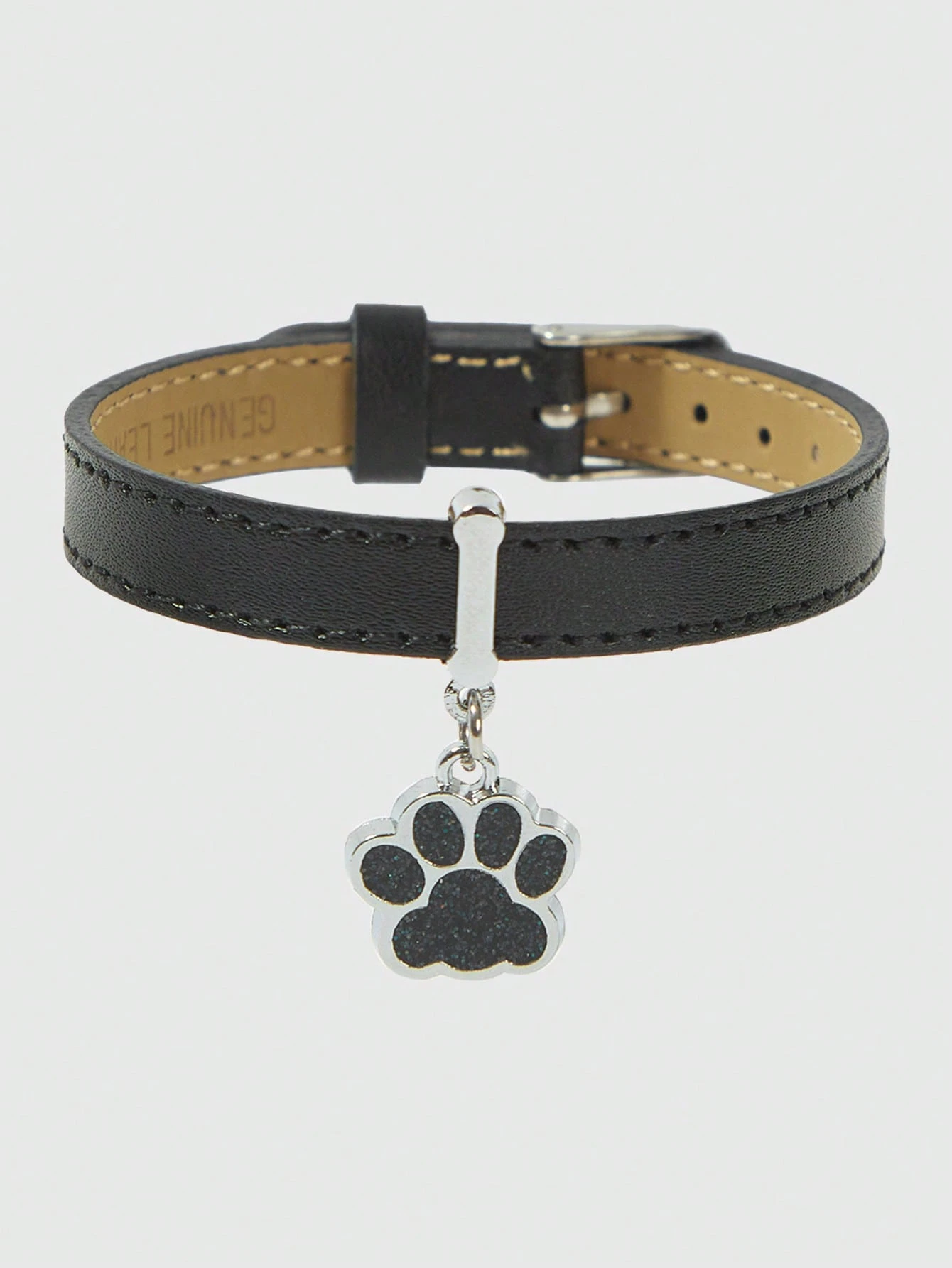 1pc Cute Cat Paw Punk Style Metal Pendant Leather Bracelet, Fashion Wrist Band
