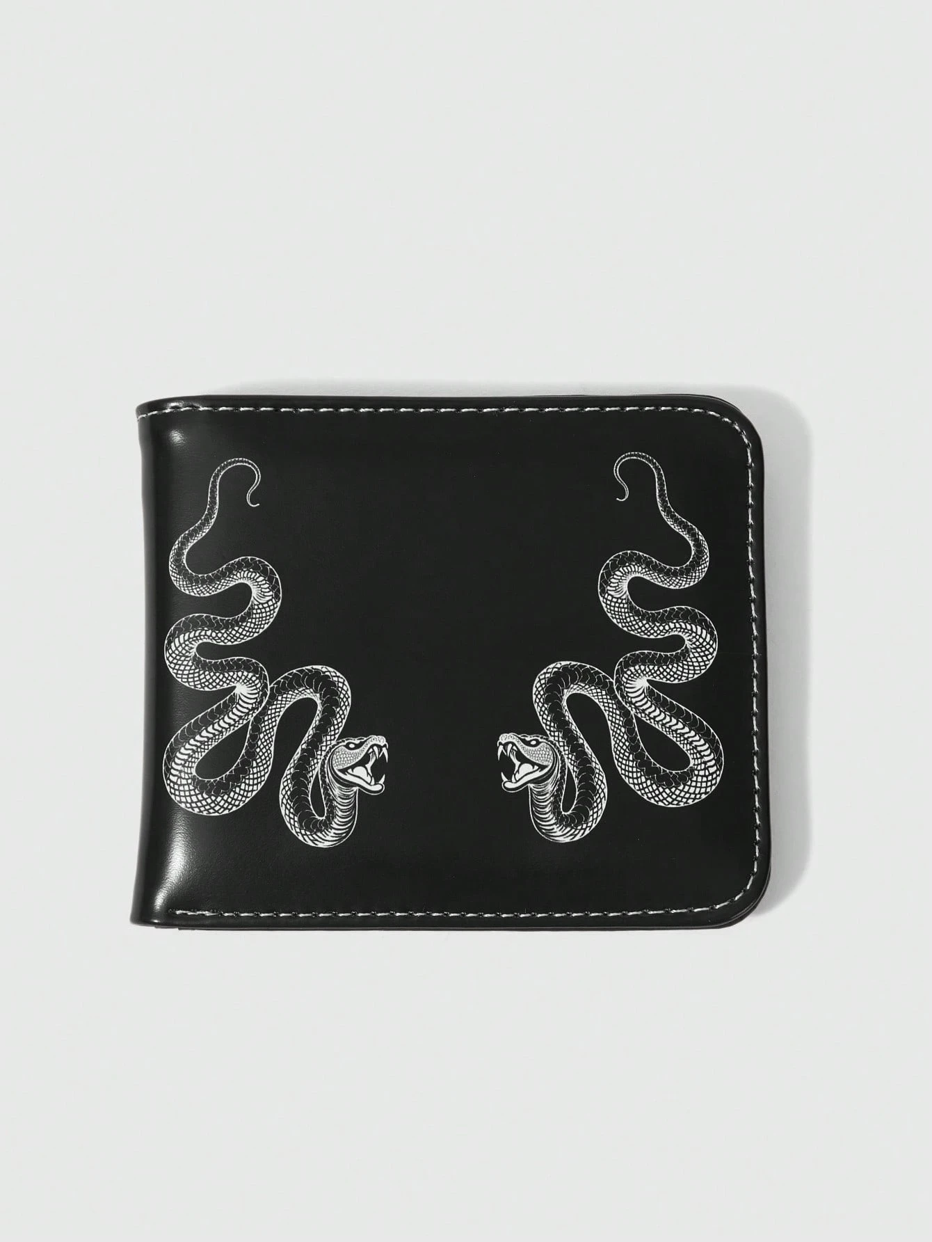 1pc Dark Gothic Double Snake Print Bi-Fold Fashion Casual Short Wallet, Portable Zipper Coin Pouch, Punk Style Unisex Pocket Purse