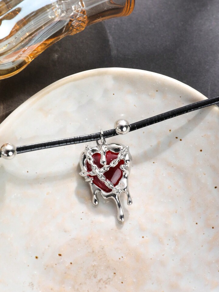 1pc Dark Gothic Style Captive Heart Lava Pendant Leather Necklace For Women