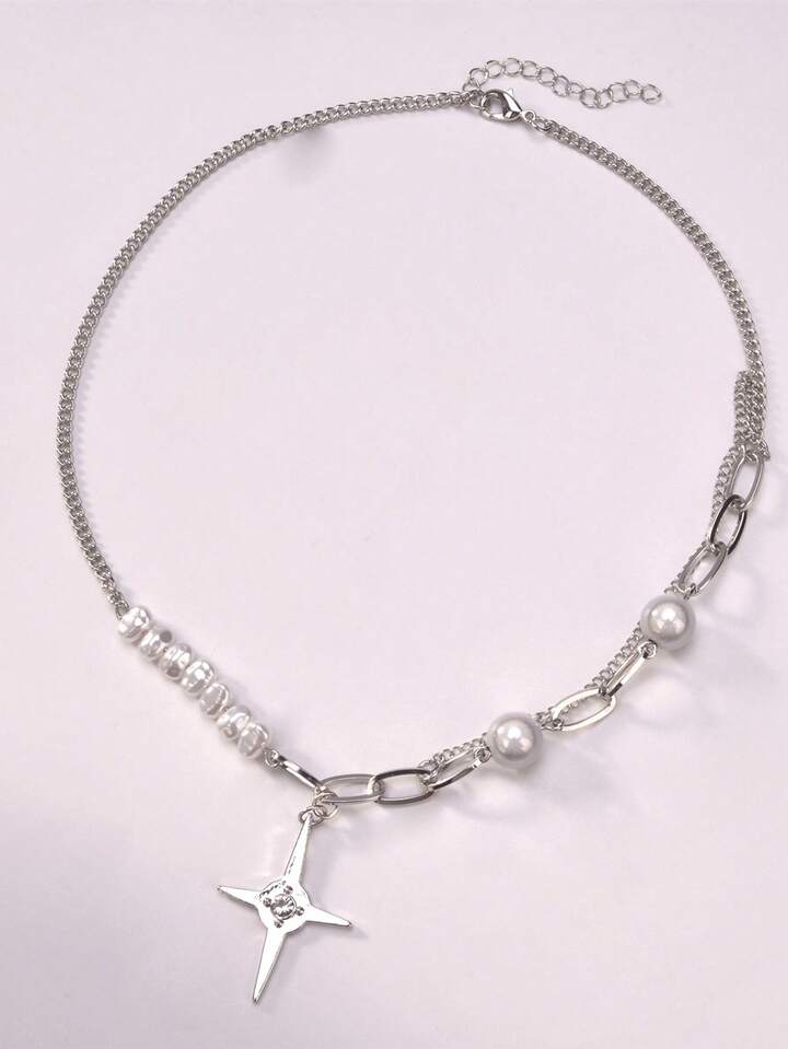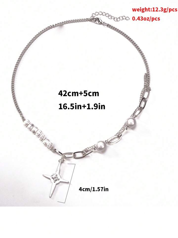1pc Fashion Iron Alloy Faux Pearl Decor Star Charm Necklace For Women For Daily Decoration