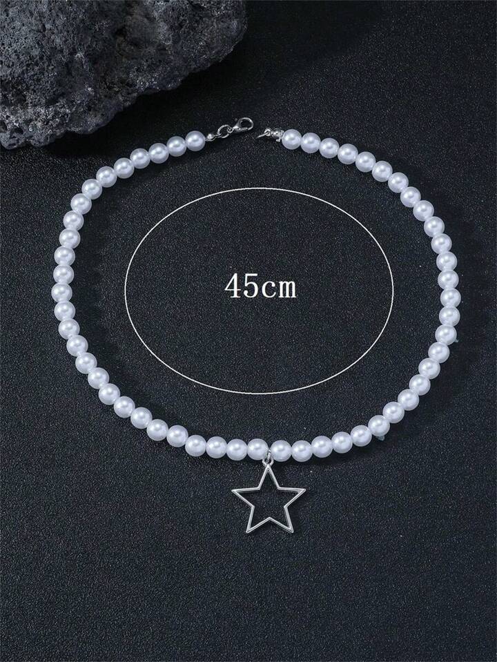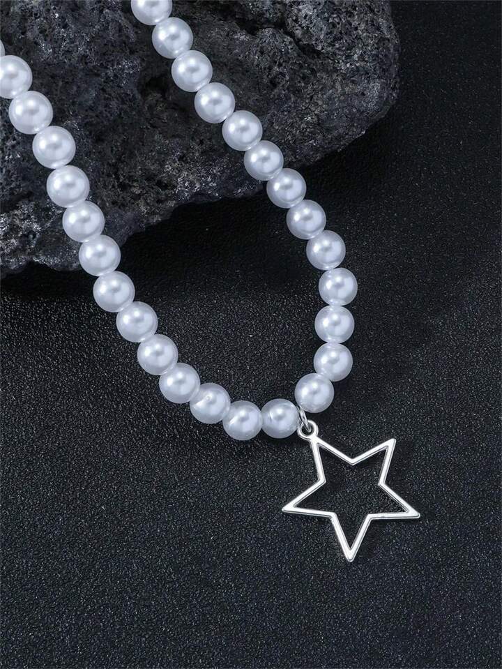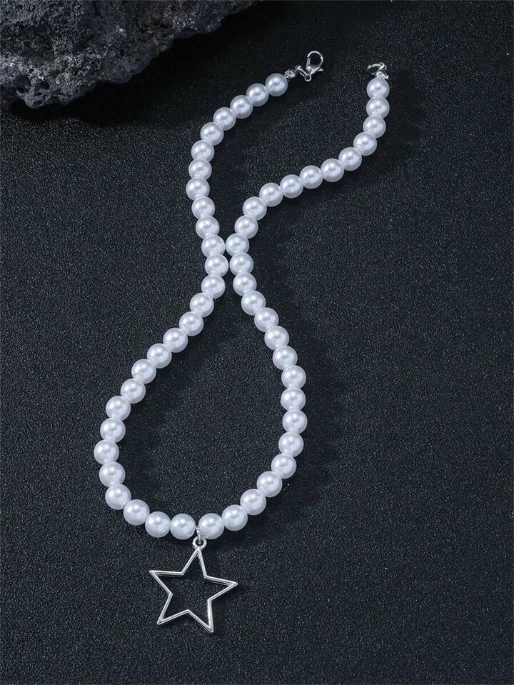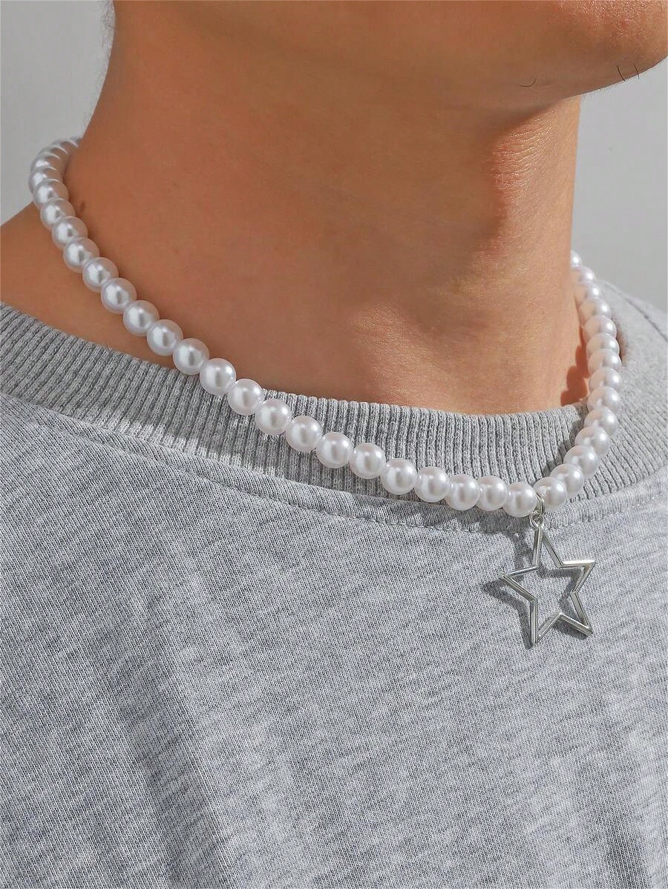 1pc Fashion Star Charm Faux Pearl Beaded Necklace For Men For Daily Decoration