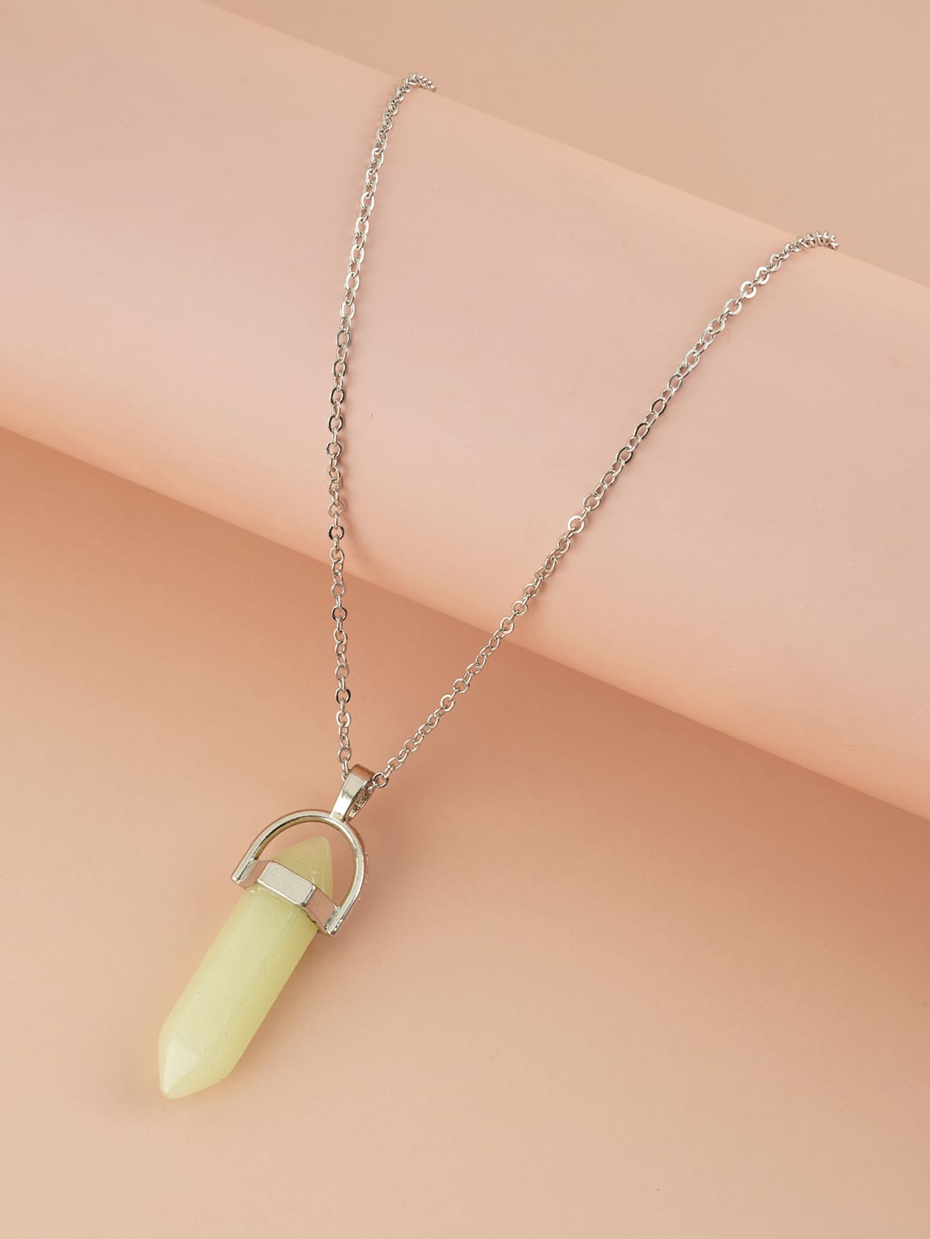 1pc Fashionable Funny Creative Personalized Yellow Hexagon Luminous Pendant Necklace, Bless Card Packaging, Suitable For Gift & Daily Matching