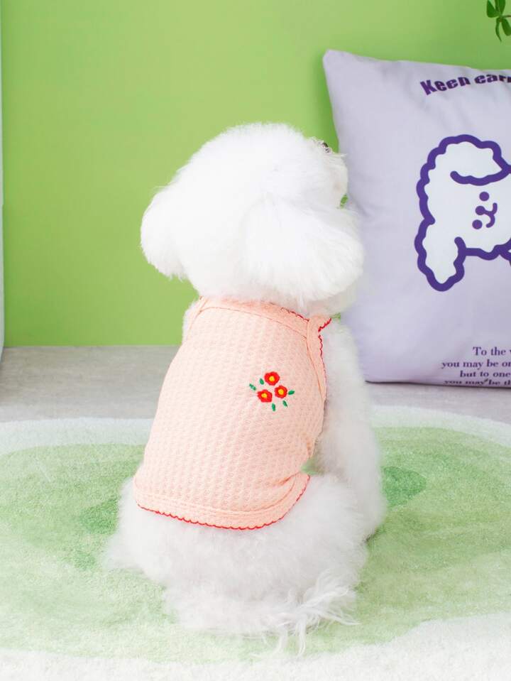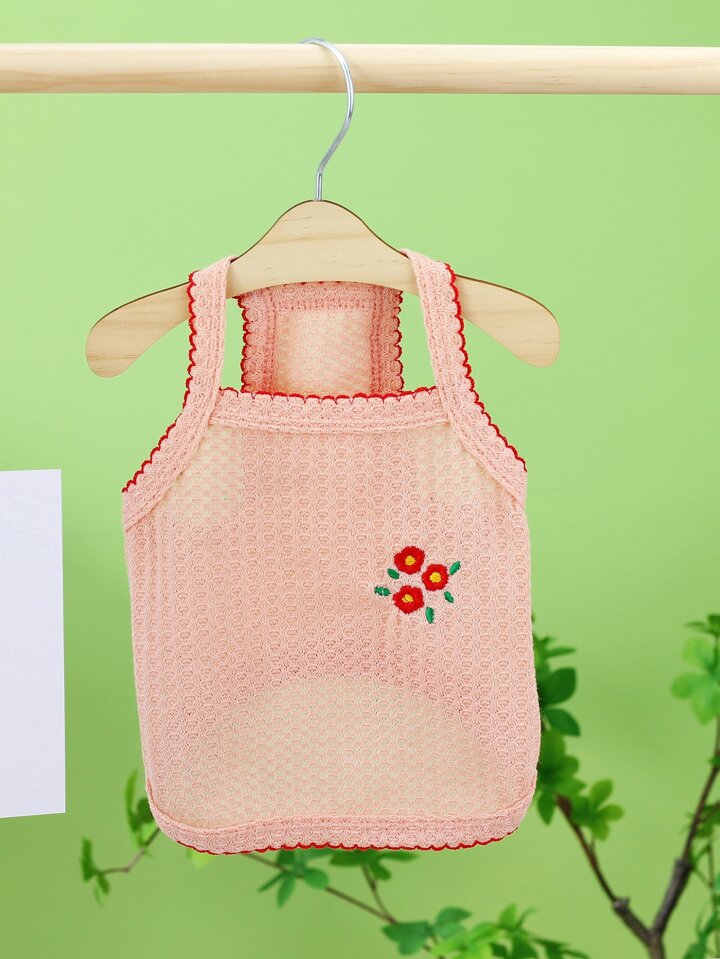 1pc Flower Embroidered Pet Tank