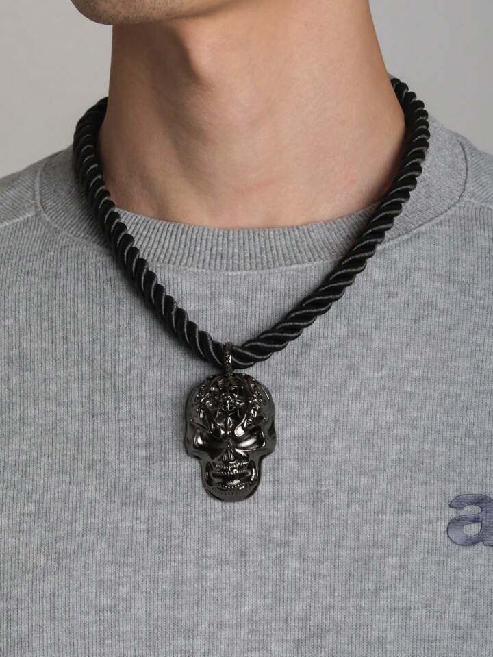 1pc Gothic Dark Style Exaggerated Thick Rope Skull Pendant Necklace For Men