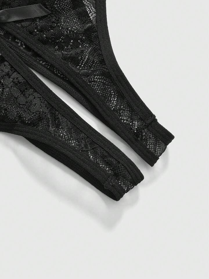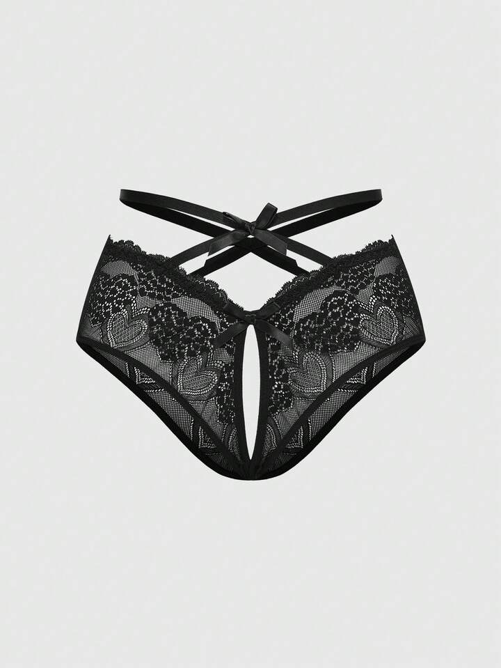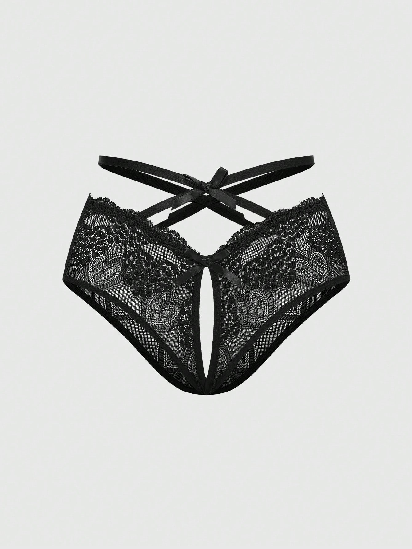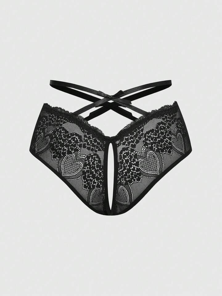 1pc Gothic Heart Lace Bow Crotchless Sexy Panties