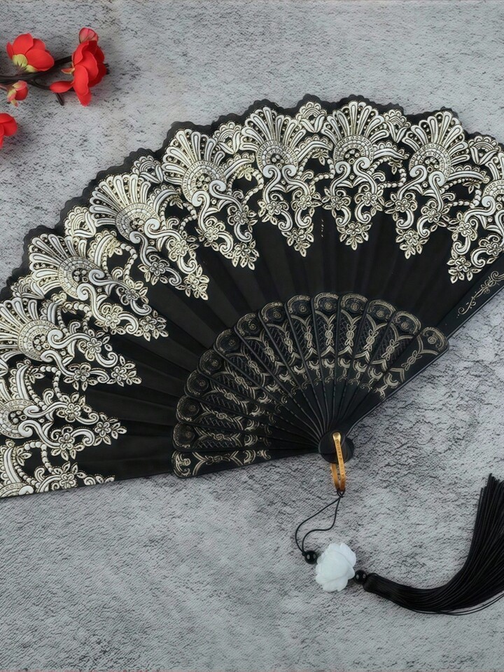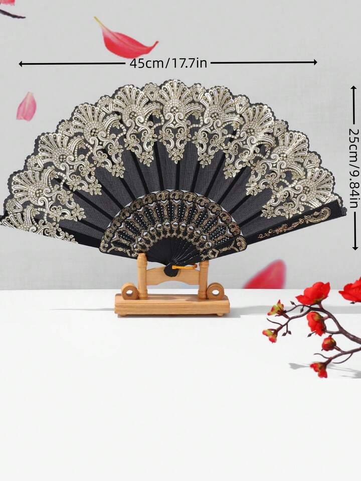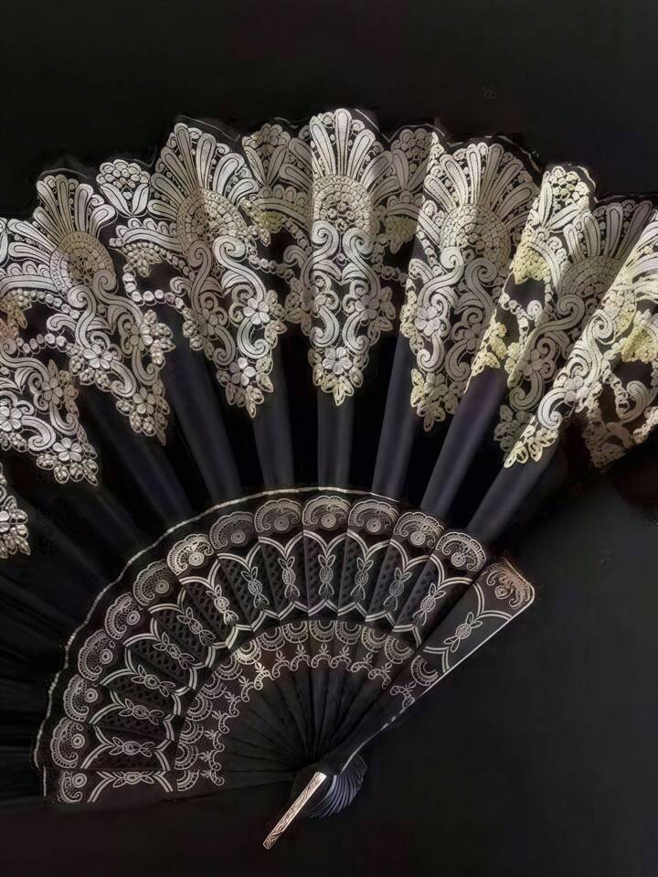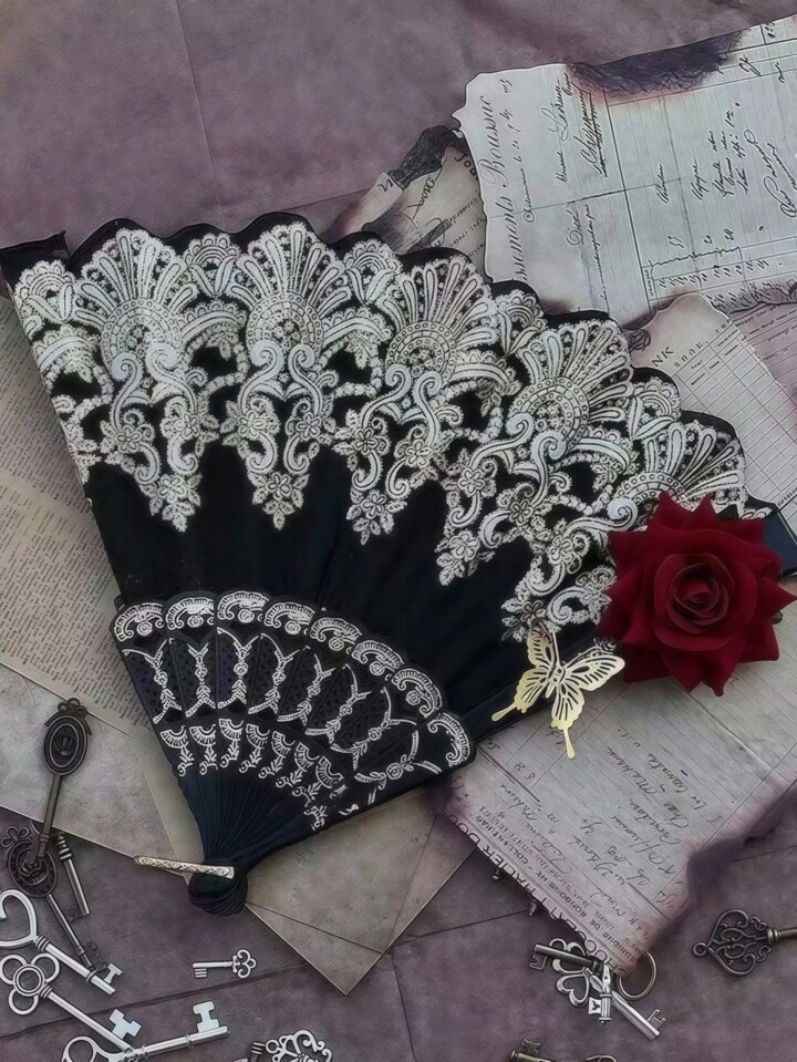 1pc Gothic Lace Folding Fan - Exquisite Fan, Victorian Style Handheld Fan For Dark Photo Shoots, Cosplay Props, Elegant Vintage European Decor, Halloween