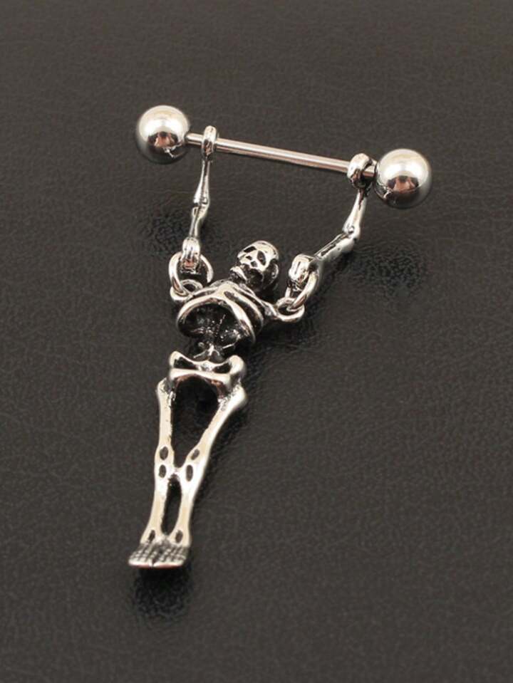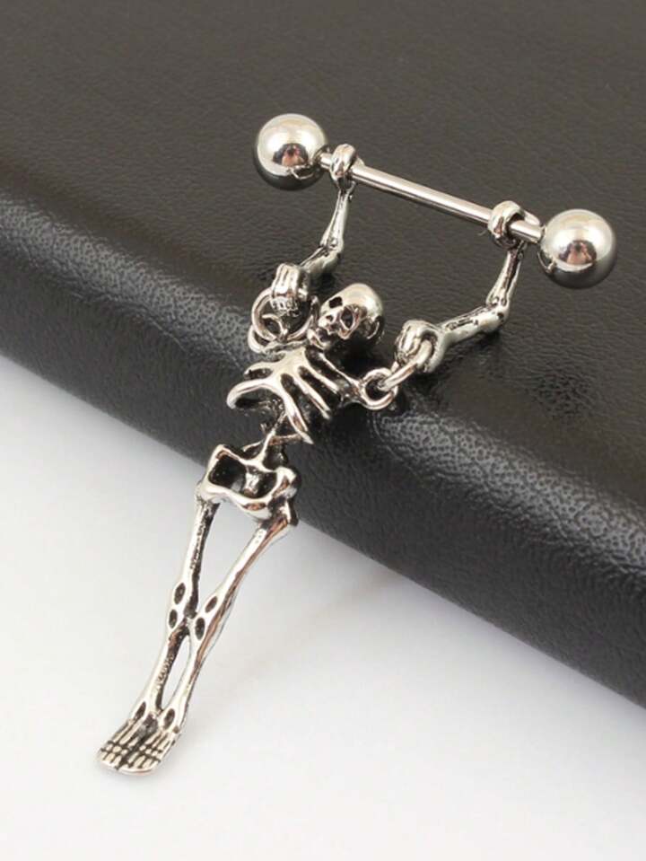 1pc Gothic Skull Shaped Stainless Steel Piercing Earring, Halloween