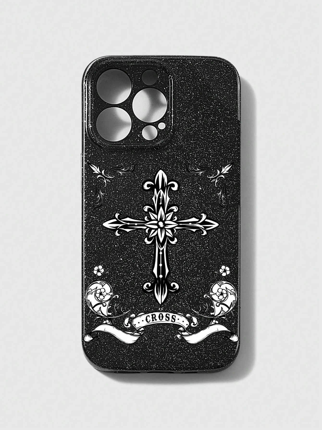 1pc Gothic Style Black Cross Graphic Black Phone Case, Bracelet Compatible With Apple 11/12/13/14/15 Pro Max