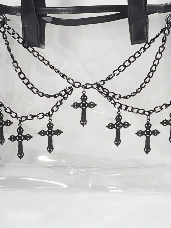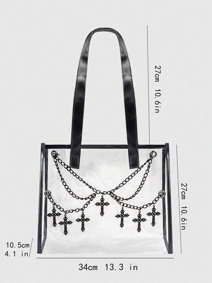 1pc Gothic Style Cross Chain Women's Tote Bag, Large Capacity Transparent PVC Waterproof Shoulder Bag
