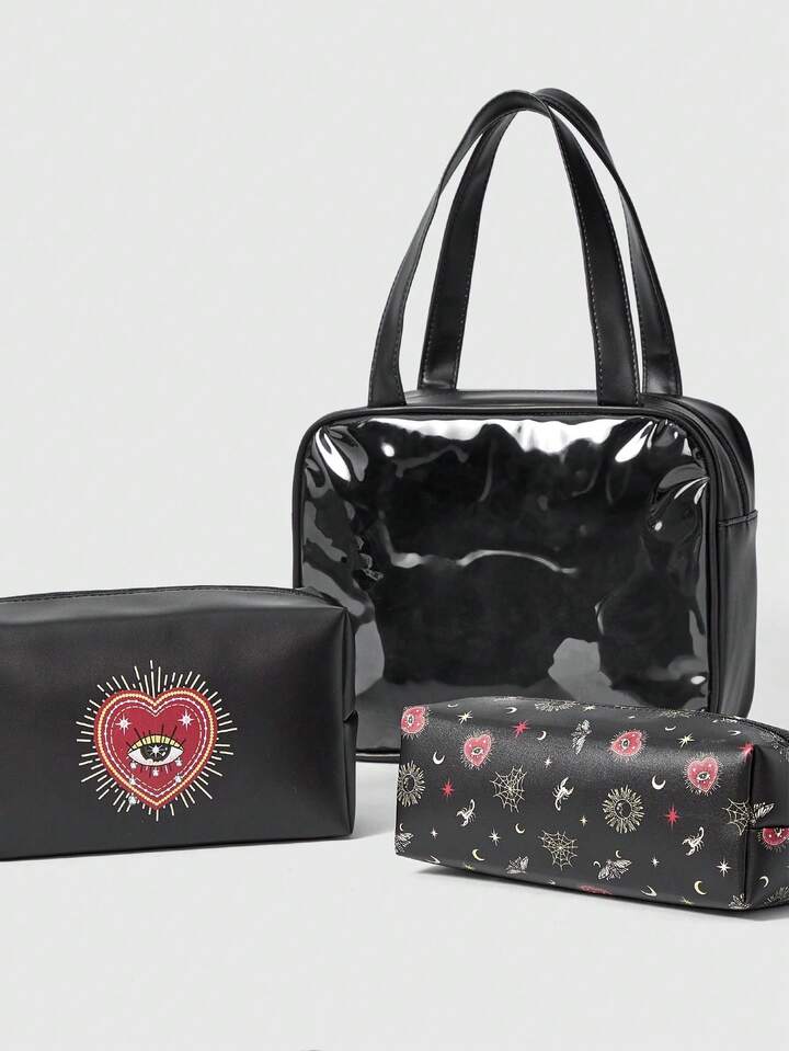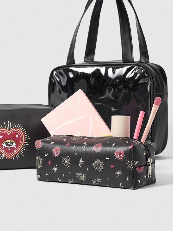 1pc Gothic Style Eye Print Fashion Portable 3 PiecesCosmetic Bag Set