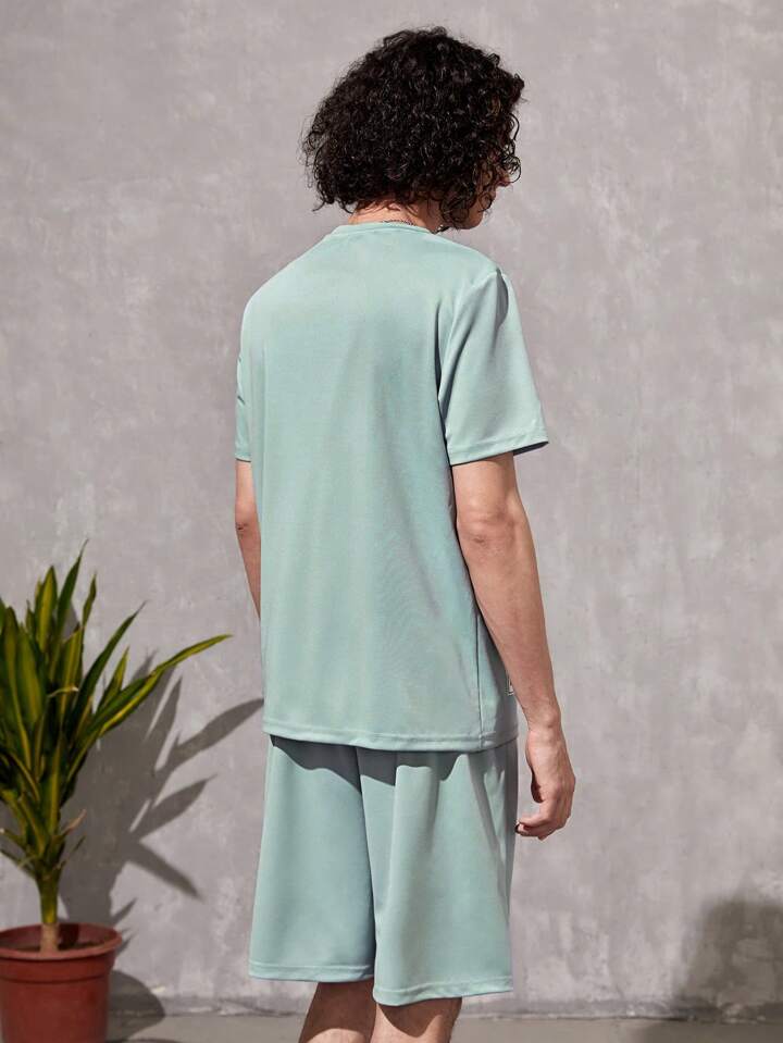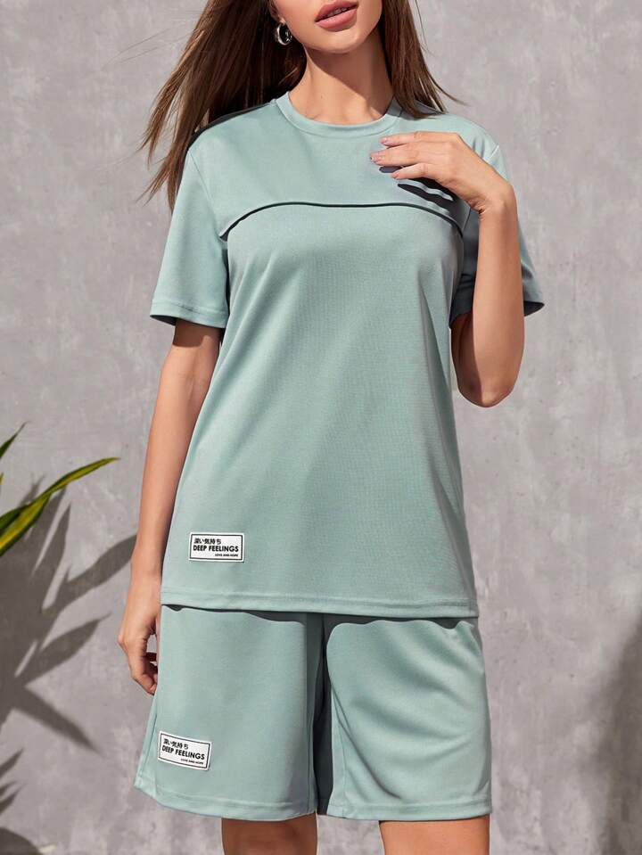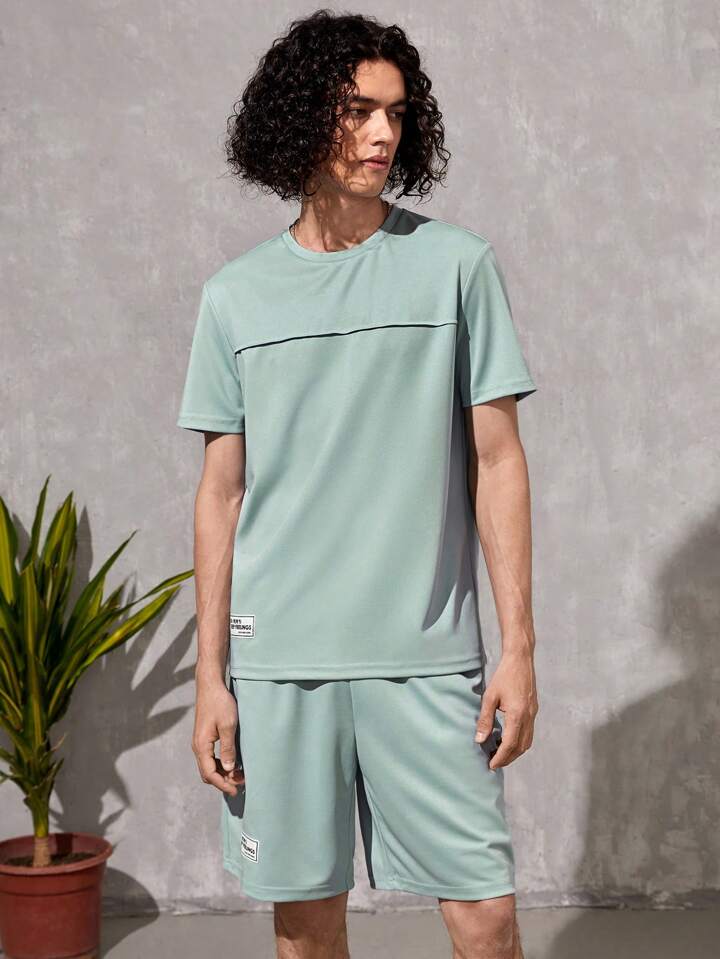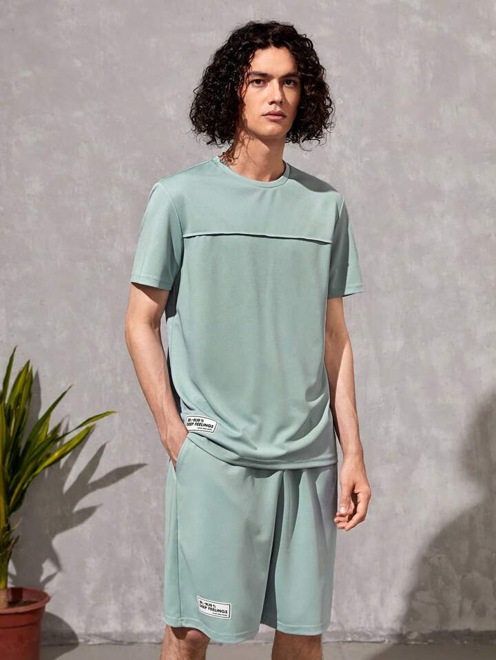 1pc Men Letter Patched Top-Stitching Tee & 1pc Shorts Couple Matching Set(Sold Separately)