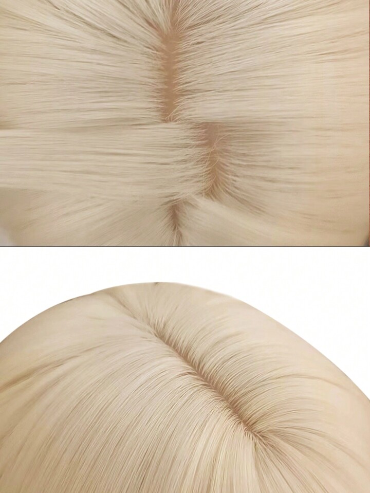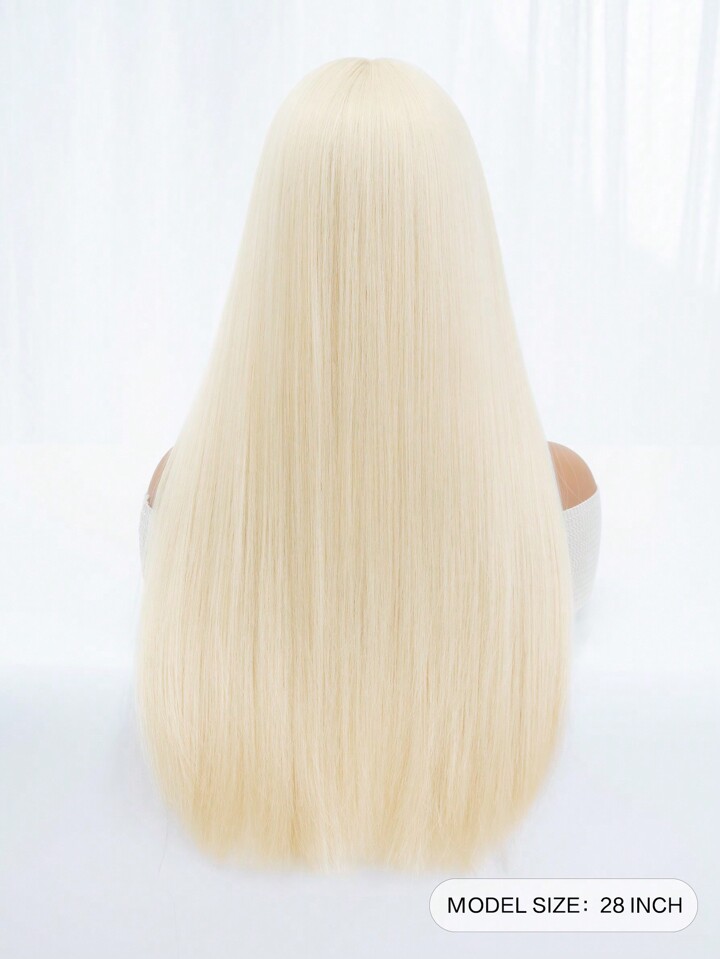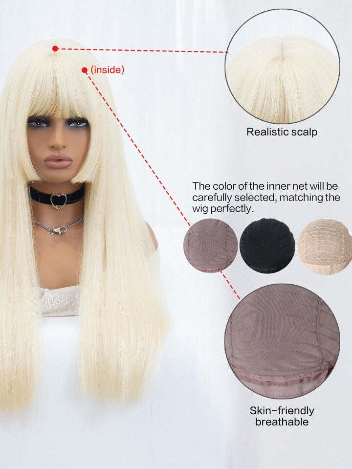 1pc Princess Style Straight Hair Wig With Bangs In Light Gold Color