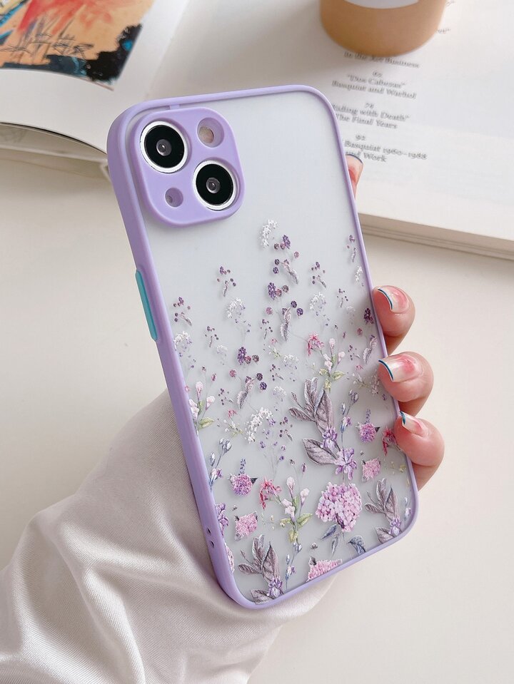 1pc Purple Floral Soft Touch Shockproof Hard Phone Case Compatible With IPhone 17, 16, 15, 14, 13, 12, 11 Pro Max