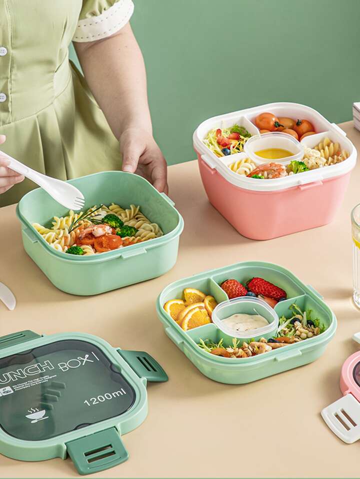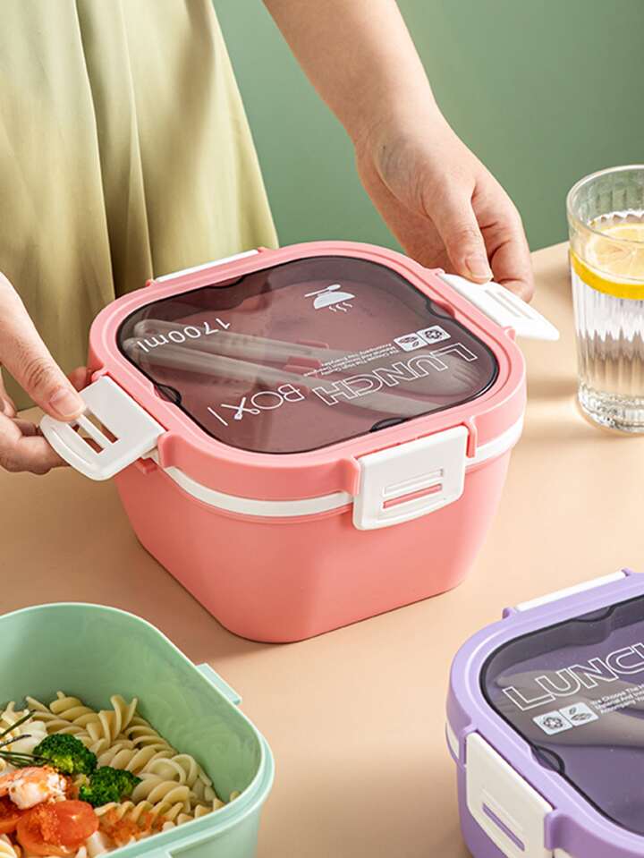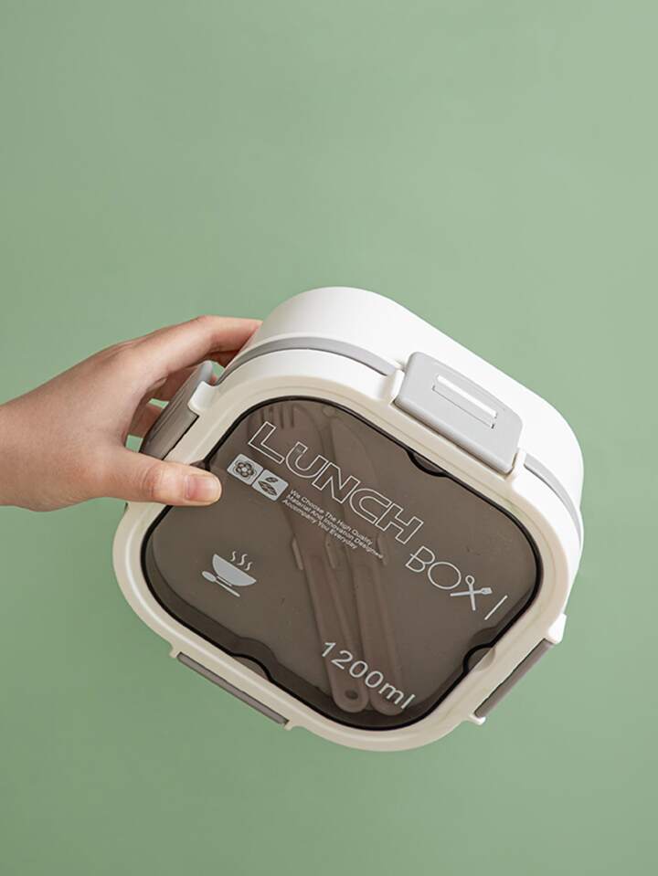 1pc Slogan Graphic Random Lunch Box With Knife & Fork