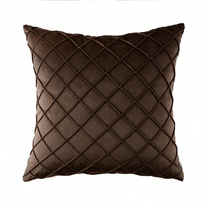 1pc Velvet Pintuck Cushion Cover, Square Soft Pillowcase For Sofa, Coffee Shop, Outdoor Garden, 18 X 18 Inches, 45 X 45 Cm, Dark Brown