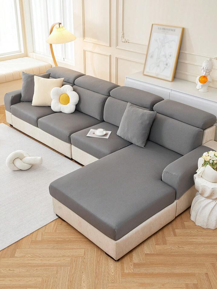 1pc Waterproof Four-Seasons Universal Anti-Slip Sofa Cushion Cover, Modern Simple Style Elastic Sofa Slipcover, Pet-Friendly Solid Color Sofa Pad Suitable For L-Shaped Combination Sofas And 1/2/3/4 Seater Sofas (Sold Separately)