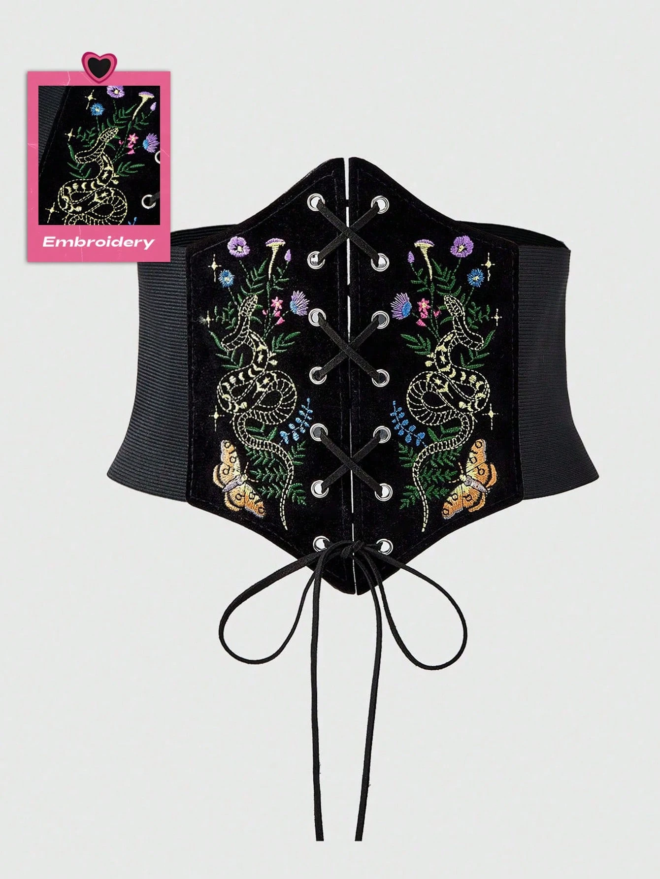 1pc Women Black Lace Chain Skull Cross Tie Decor Elastic Waistband Goth Dress Accessory For Halloween