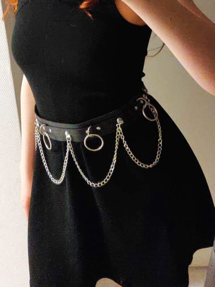 1pc Women Chain Decor Punk Belt, For Dress Decoration