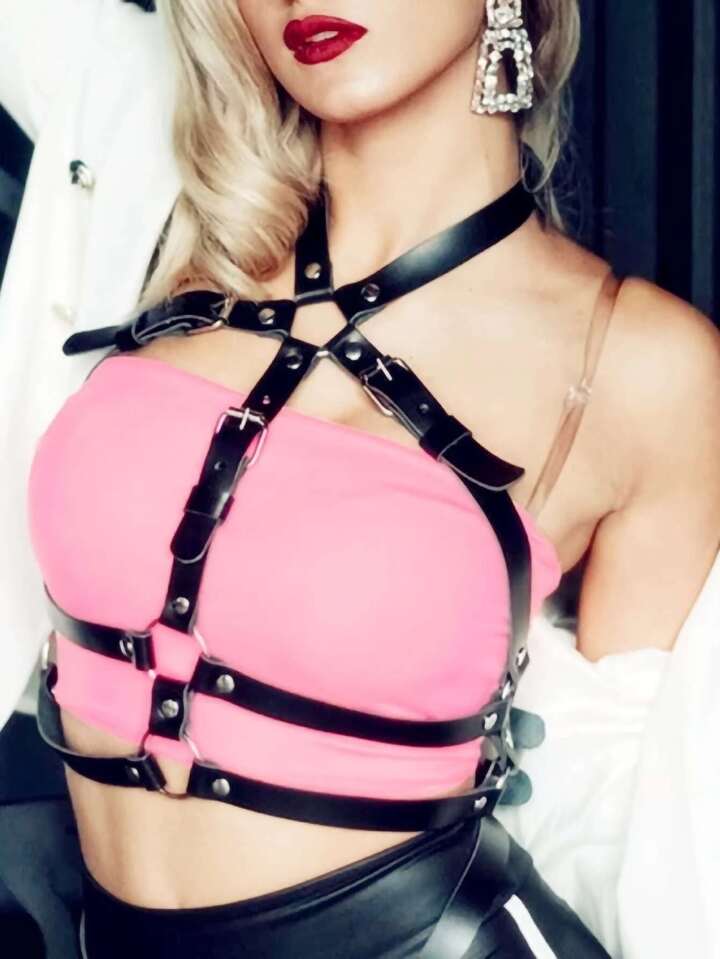 1pc Women Ring Linked Adjustable Fashion Harness Belt