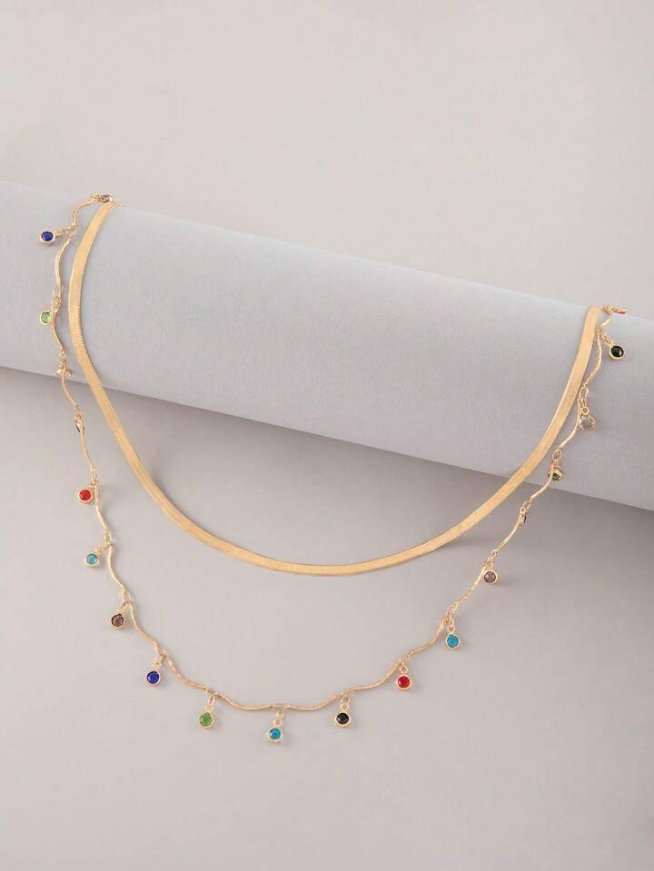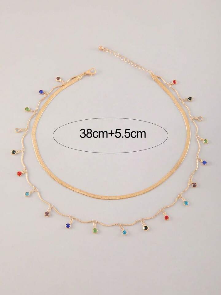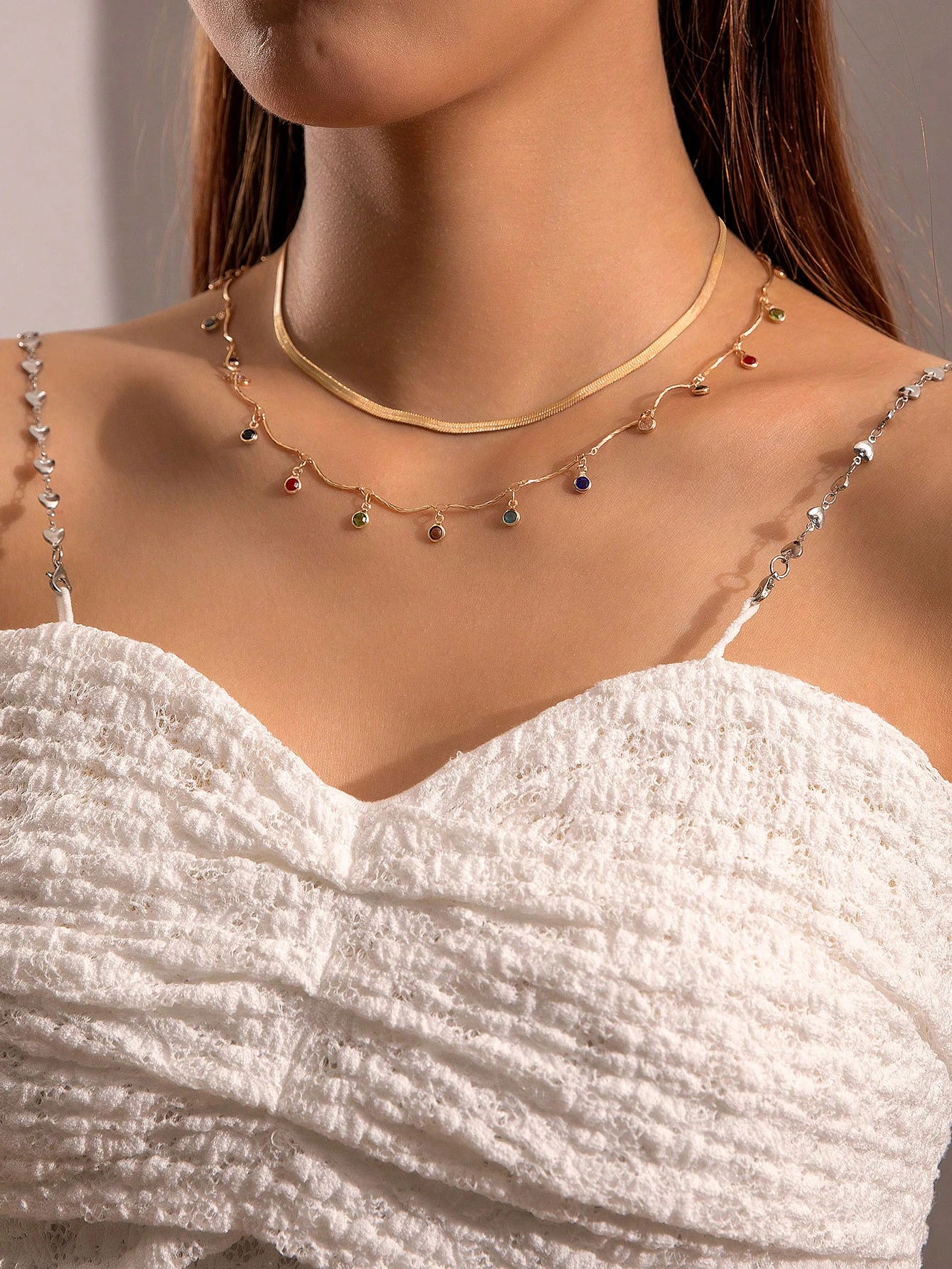 1set Fashion Multilayer Colorful Rhinestone & Metallic Alloy Necklace For Women, Perfect For Date And Gift