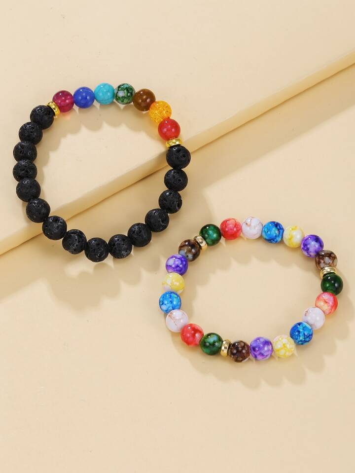 1set Fashionable Multicolor Lava Stone Beaded Bracelet For Women Streetwear